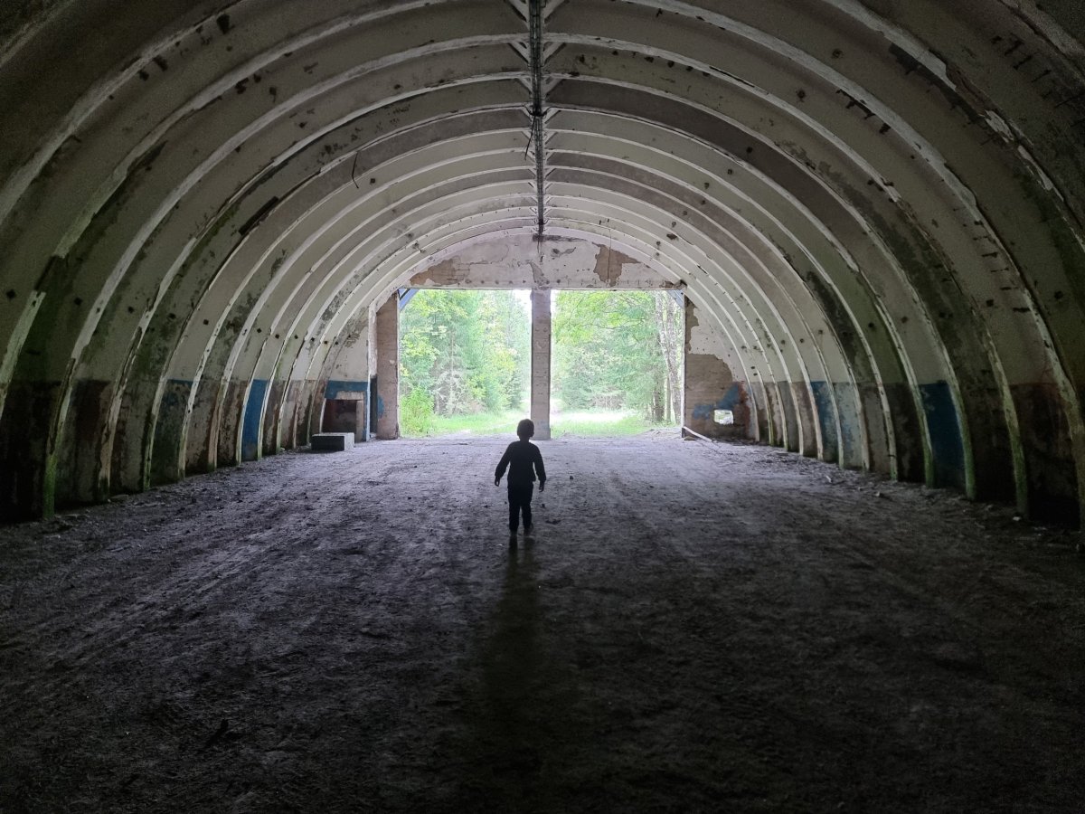 Snídaně byla bohatá, v poměru cena - výkon jeden z nejlepších hotelů, ve kterých jsem v poslední době byl. Nebyl čas se zdržovat, program byl nabitý, tak hned po snídani do auta a asi 1:45 trvající přejezd k raketové základě Rohu. Právě na tyto necelé dvě hodiny se uplatní výše zmíněné poznatky o ježdění po Estonsku: rovné silnice, minimum municipalit a posledních pět kilometrů po opravdu nehezké polňačce. Auto jsme nechali na trávě u kraje cesty a obešli bývalou sovětskou raketovou základnu - ohromné hangáry pro skladování raket a jejich odpalovacích zařízení, ubytovací prostory pro vojáky, a z celého komplexu dýchající dost nepříjemná atmosféra Studené války. Poctivě jsme prolezli polorozbořené armádní objekty, byť by z toho babičky asi moc radosti neměly, v jednom z hangárů byl nasprejovaný obraz s kladivem a srpem a Leninem. Dospěli jsme s J. k dost ožehavému problému, jak pětiletému dítěti vysvětlit zrůdnost komunismu a zejména pokusu o jeho realizaci. On tedy J. má poměrně za ušima, jenže to vypadlo, že ztroskotáme na definování základních pojmů "dělnická třída" a "diktatura proletariátu", tak jsem se nakonec spokojil s lite verzí na praktických příkladech s tím, že na teorii (a její převádění do praxe) bude dost času později.