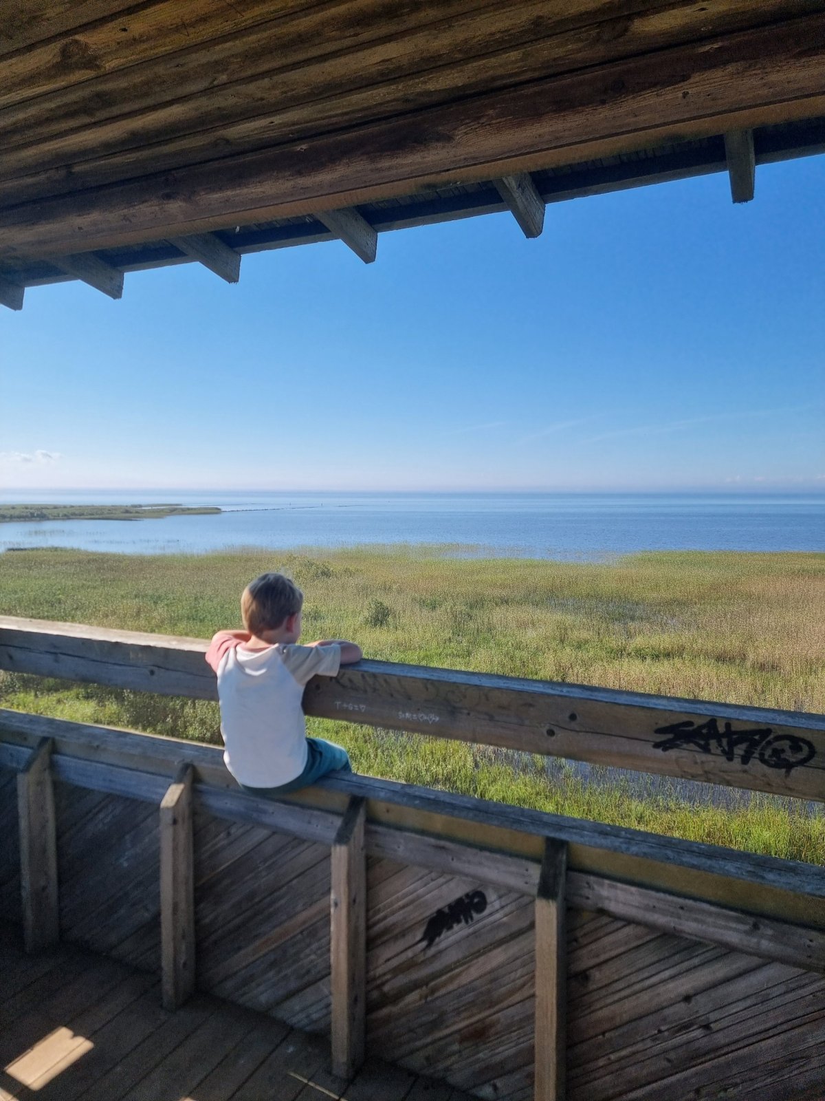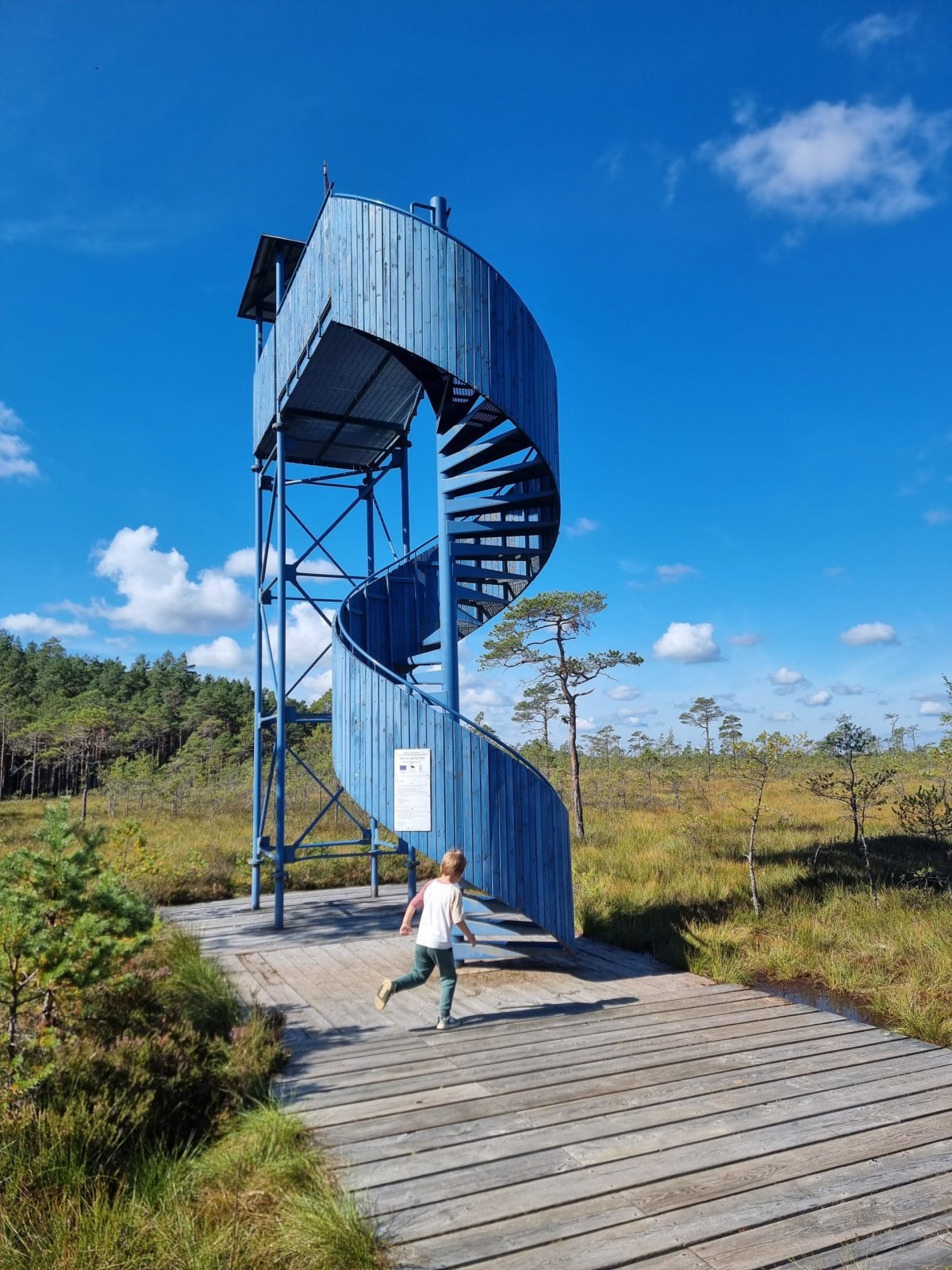Tenhle den byl obětovaný cestování, do Tartu jsme jeli vlastně jen proto, že J. chtěl hrozně vidět dům hlavou dolů. Po home-made snídani jsme vyrazili do národního parku Soomaa, cesta měla trvat necelé dvě hodiny, takže jsem po cestě zařadil krátkou zastávku na rozhledně Joesuu Vaatetorn u obrovského jezera Viljandi. Když jsme se už blížili k parkovišti národního parku, přišla výše zmíněná jobovka: najednou krásný asfalt přešel v nehezkou šotolinovou cestu, všude plno prachu a průměrná rychlost spadla sotva na 30 km/h. Po deseti kilometrech jsem zastavil a začal v mapě hledat, jestli není možná jiná cesta, protože ani naším směrem, ani proti nám nejel vůbec nikdo. Jiná cesta ale nebyla, a najednou, po dalších třech kilometrech, se zničehonic objevil asfalt. Dojezd na parkoviště ale nebyl zadarmo, dvoukilometrové finále bylo opět po kamenité cestě.
