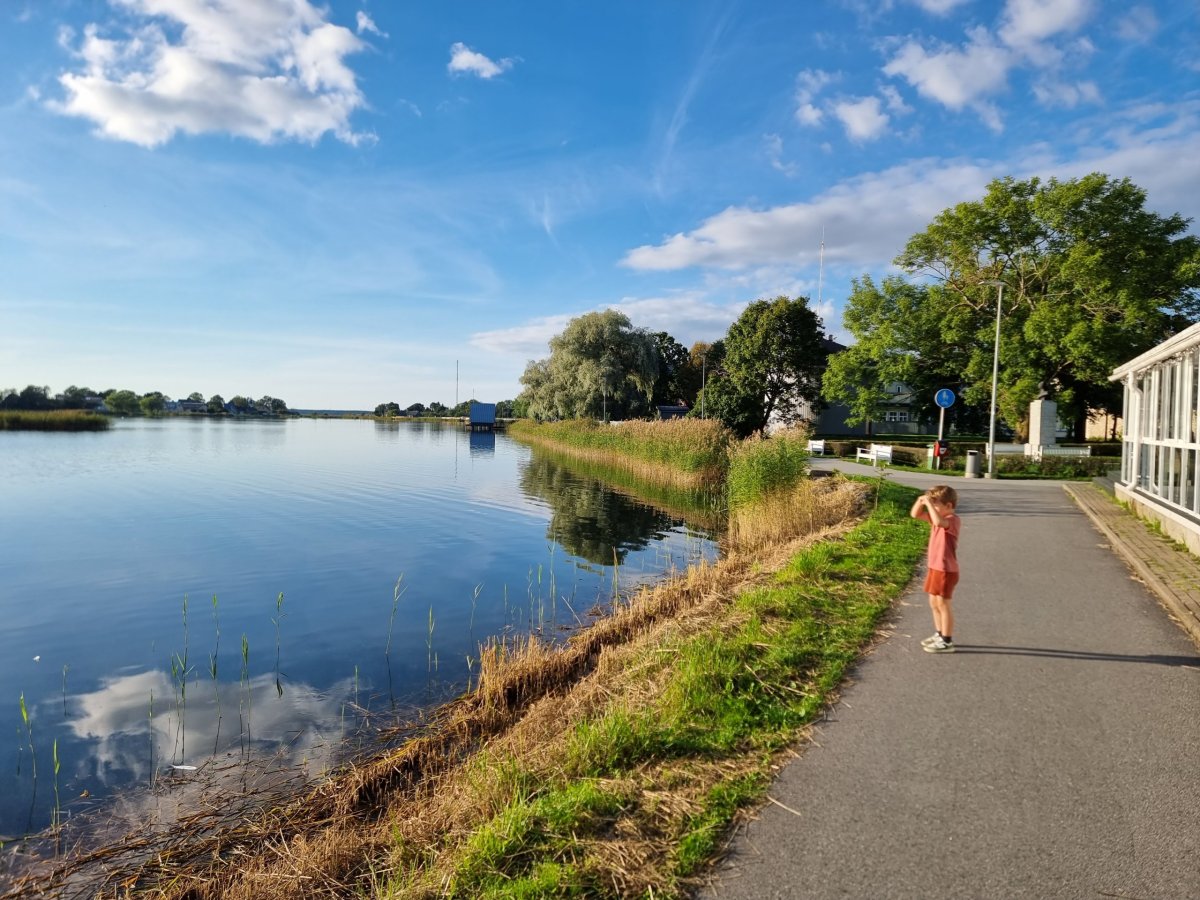 Původně jsem se chtěl zastavit v přístavním městě Pärnu, ale J. byl proti, a já tam ani neměl nic konkrétního k vidění, tak jsem si říkal, že se projdeme ve městě Happsalu, kde byl objednaný hotel na tuhle noc. Našinec, zmlsaný největší koncentrací čerpacích stanic v Evropě, si tak nějak nepřipouští, že by měl tankování plánovat. Nepovažoval jsem to za nutné, ale když jsme dobrých 80 kilometrů nepotkali benzínku a ukazatel paliva spadl na poslední čárku z deseti, rezignoval jsem na náhodu a našel nejbližší benzinku. Byla od nás 30 km, v Česku věc nevídaná. Na benzínkách mají Estonci franšízové občerstvení s burgery, hranolkami, sendviči a dalšími zdravými pokrmy, tak jsme tankování využili i jako zastávku na oběd. S plnými žaludky i nádrží jsme pak vyrazili na finále dvouhodinového přejezdu, do hotelu Congo (56 €). To byl hotel trochu svébytný, museli jsme telefonovat na uvedené číslo, sdělili nám kód od dveří a číslo pokoje, klíč jsme si sami našli na recepci a ubytovali se. Pak už jsme se vyrazili projít po městě, ve kterém byla příjemně ospalá přímořské atmosféra, ovšem bez tun turistů všude okolo. Otevírací hodiny místního hradu jsme nestihli, ale alespoň bylo u hradu dětské hřiště. Podél moře jsme přešli z letitějších částí města do novějších, kde se nachází největší estonská klinika pro osoby s neurologickými potížemi a postižením, tomu jsou uzpůsobena také některá hřiště a venkovní posilovny, což mi bylo velmi sympatické. Při západu slunce jsme došli do kavárny Hapsal Dietrich, kde bylo trochu narváno, ale zase nás obsluhoval mladík s fantastickou oxfordskou angličtinou. Turisticky provařenější místo bylo znát také na ceně (pivo, džus a dort za 18 €). Na hotelu nebylo co dělat, takže jsme po návratu šli rovnou spát.