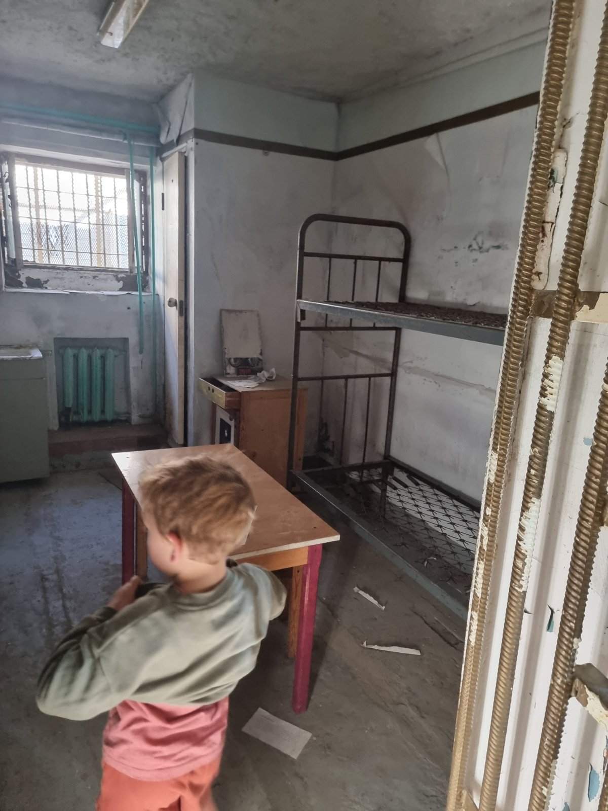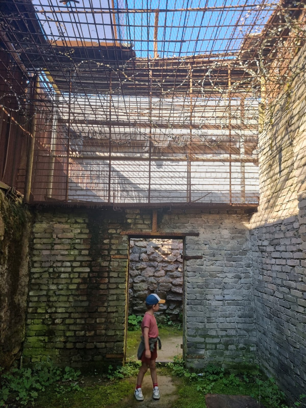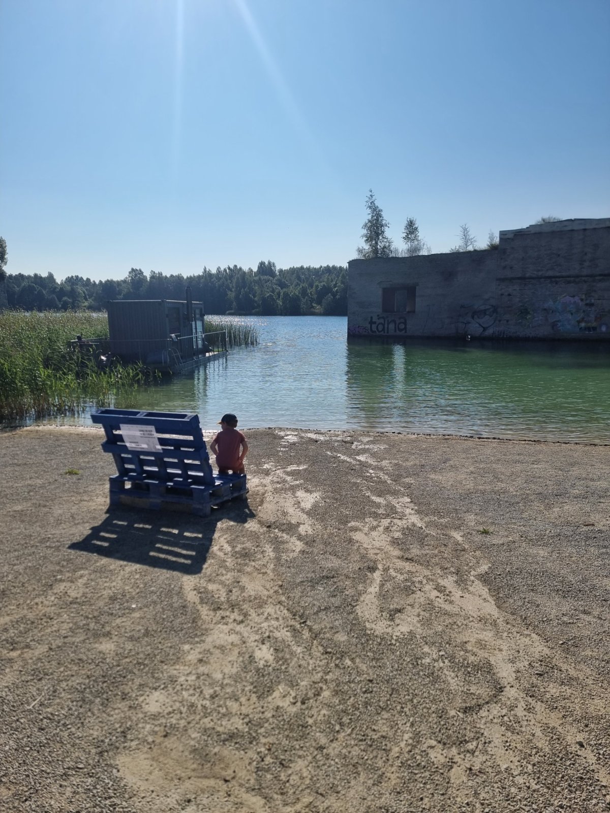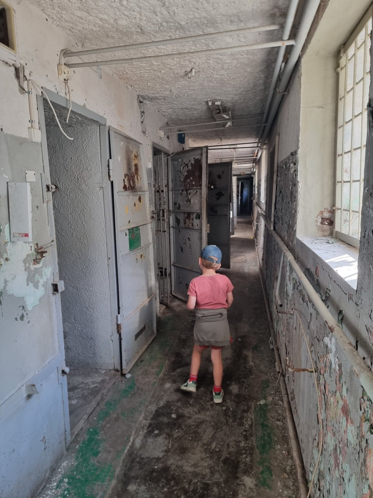 Druhým highlightem výletu mělo být opuštěné vězení Rummu, neb profesně mám k vězeňství blízko. Po snídani, která byla lepší než hotel jako takový, jsme vyrazili, tentokrát to bylo jen asi 20 minut cesty. Přijeli jsme ještě před otvíračkou, takže jsme si chvilku počkali a do opuštěného vězeňského komplexu jsme vcházeli jako první (vstupné 10 €, J. zdarma, cena za vězeňský komplex spolu s nedalekým zatopeným lomem). Cesta podél obvodových zdí mezi ostnatými dráty se zajímavostmi z vězeňského života - Estonsko má jedno z nejnižších zaplnění věznic v EU, nabízí místa ve svých věznicích k pronájmu jiným státům, to jen tak mimochodem - a okolo strážních věží dávala tušit, že půjde o unikátní zážitek, hlavně pro J., já už v několika věznicích pracovně byl, byť tedy funkčních. Značení bylo trochu chaotické, takže jsme si směr trasy zvolili podle sebe a hned na úvod jsme vlezli do bloku vězeňských cel, které byly při zavření vězení ponechány takřka v původním stavu. Zpočátku žertovná atmosféra se zavíráním do cel po asi hodině v tomhle komplexu J. přešla a bez mučení přiznávám, že ani mě nebylo lehko u srdce. Vězeňská kantýna, tělocvična, ubytování dozorců, vedení věznice s původní technikou, to vše bylo ještě celkem v pohodě, ale když došlo na nemocniční budovu, kde zůstaly invalidní vozíky, francouzské hole, berle i lůžka, to už bylo vážně jako z laciného hororu, a tehdy jsme se shodli, že toho už bylo dost. Opustili jsme prostor za ostnatým drátem a zamířili k nedalekému lomu, ve kterém vězni pracovali, ale kde po uzavření věznice přestali odčerpávat vodu a došlo k jeho zaplavení. Slunce, teplo a vykoupání nám vrátilo optimismus, v plážovém baru jsme si dali oběd (minipalačinky a pití, 13 €) a sledovali prolétající stíhačky NATO chránící vzdušný prostor nad Pobaltím, takže nemohlo nedojít na vysvětlování aktuální bezpečnostní situace v Evropě. Podstata článku 5 smlouvy o NATO se vysvětluje podstatně lépe, než diktatura proletariátu.