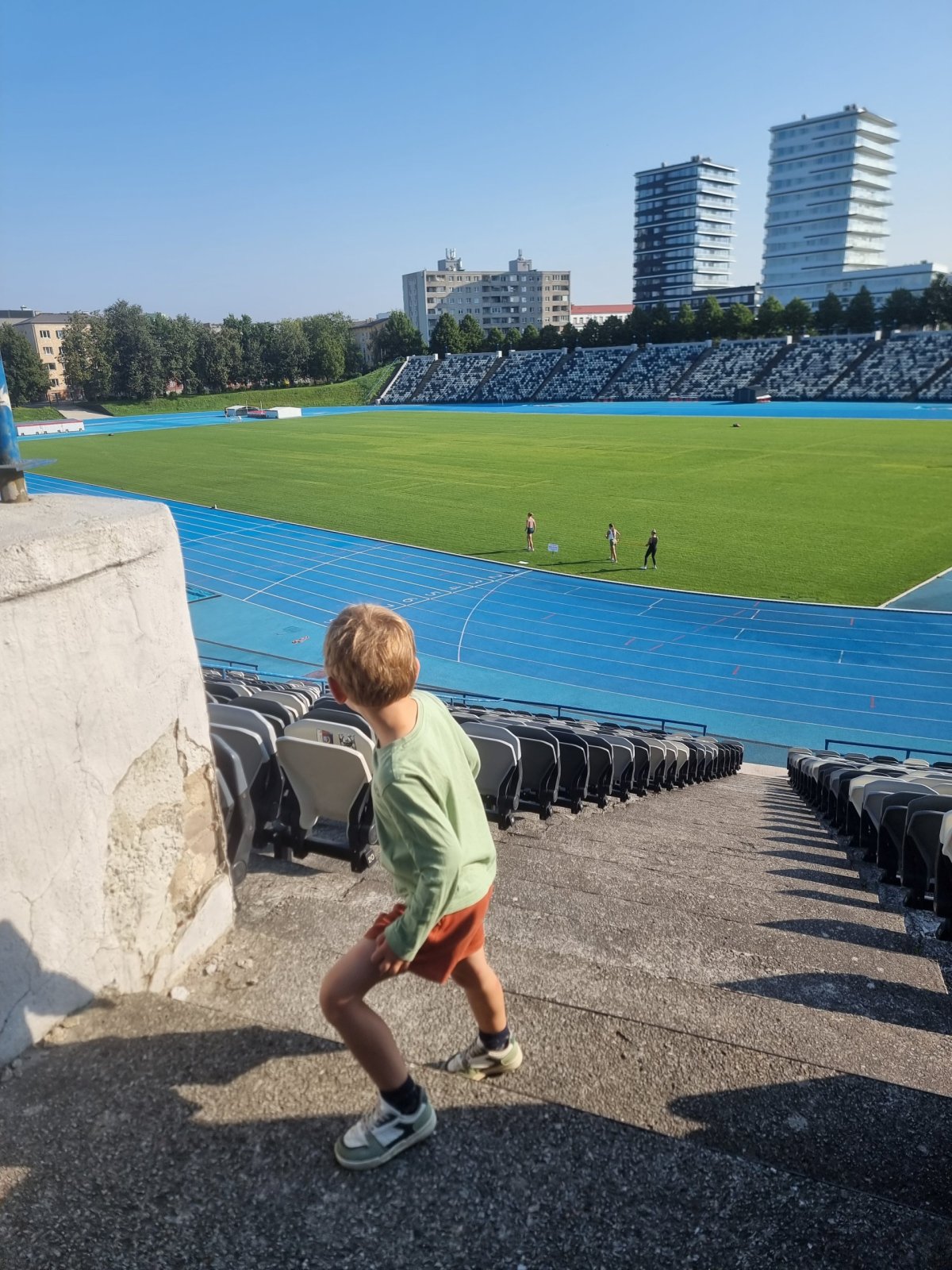 Odlet jsme měli až po třetí hodině, ale ono to čekání na odlet je vždy takové... nijaké. Po snídani jsme se proto šli jen projít do okolí hotelu, na úplně nový atletický stadion, do přilehlého parku, na dětské hřiště. Možnost check-outu ve 12:00 jsme využili do poslední minuty, pak už jsme se s věcmi prošli přes několik ulic na zastávku autobusu, který nás během deseti minut dovezl na letiště. Oběd jsme si dali v bistru v odletové hale, koupili si i sendvič do letadla. Po security checku jsem ocenil empatii Estonců ve vztahu k cestujícím s dětmi a nějakou dobu jsme strávili u prolézačky s klouzačkou mezi gaty. Odlet byl nakonec přesně na čas, stejně tak přílet do Berlína. Tam to také známe, takže jsme došli na nádraží, naskočili na vlak, došli za pár minut k autu a vyrazili domů. Neodpustím si jemnou kritiku Braniborských dálnic, co 10 kilometrů byla dálnice zúžená do jednoho pruhu a to byl opravdu očistec. Přejetím hranic Saska však tyhle problémy skončily a tak jsme něco málo po třech hodinách šťastně dorazili domů.