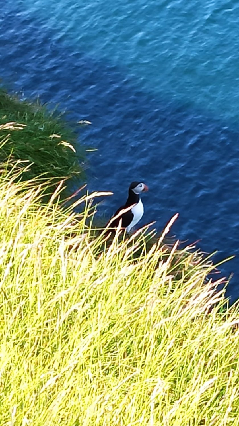 Následoval přejezd do vesničky Gjógv. Tam nás hned zaujaly děti, které se koupaly v přehrazeném ledovém potoce. Holt počasí, které běžně v těchto končinách panuje, místní řádně otužilo. My jsme se nejprve podívali do průrvy pod vesnicí, která slouží pro vytahování lodí z moře do bezpečí. Následně jsme vyšli kopec nad ní, kde se nám podařilo vidět papuchálky.
