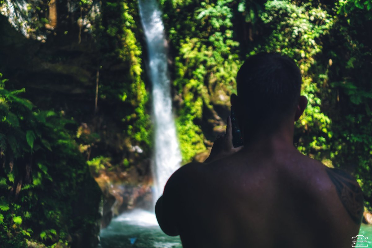 Po krásné vyhlídce do údolí míříme rovnou k vodopádům, které jsou s rýžovými terasy spojeny, jen musí ujít asi 400 schodů menší džunglí. Vodopád je 79 metrů vysoký s velkou lagunou a opět tu nejsou skoro žádní turisté , což je hlavně kvůli cestě, která je sem trochu náročnejší.