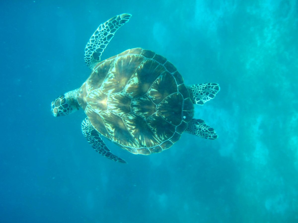 U východního cípu ostrova na takzvaném 'turtle point' žijí velké karety jako stůl, které zde trvale zůstávají. A my jsme měli možnost jich vidět.