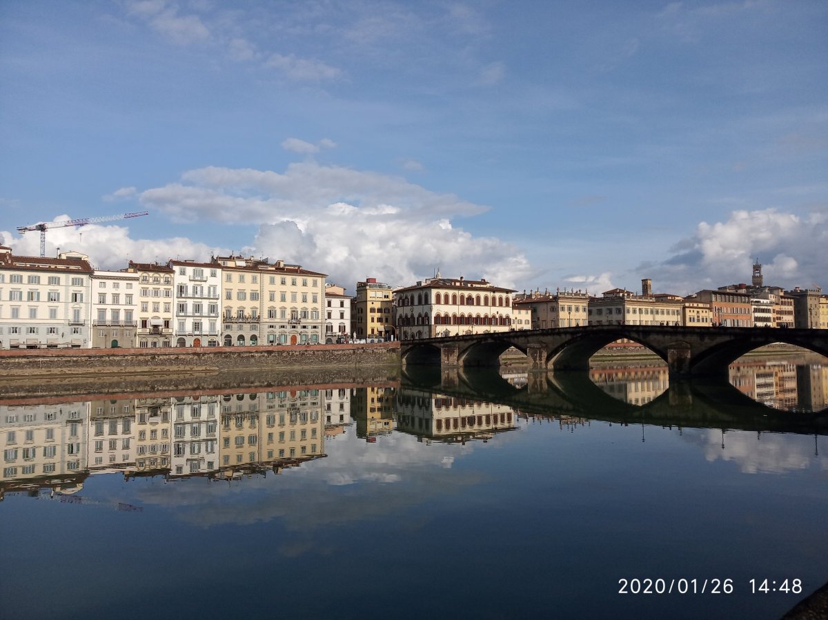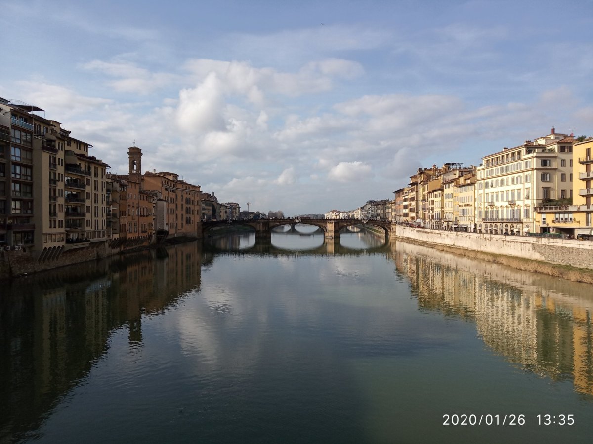 19:32 ze 7. nástupiště mi jede vlak směr Florencie! Koupím si jízdenku a na poslední chvíli si vzpomenu, že v Itálii, ji musím před nástupem do vlaku označit v označovači, jinak by byla neplatná. Ve vlaku si trochu odpočinu při dopisování deníku a za hodinu a čtvrt už vystupuji na rušném nádraží v metropoli italského Toskánska - Florencii. Než opustím halu, zjistím si všechny spoje na následující dny a vyrážím do večerních ulic. Atmosféra je úžasná! Bary, restaurace a obchůdky jedou naplno jako kdyby bylo letní odpoledne. Zastavím se u prosklené výrobny domácích těstovin. Paní zrovna válí těsto na novou várku nudlí, ale k sezení je tu pár stolků s lavicemi a všechny jsou plné, zkusím to tedy zítra. Jsem už dost unavená, ale ještě chci vidět osvětlené nábřeží a mosty přes řeku Arno, dojdu tedy až sem a pak se z centra opět vracím zpět kolem nádraží. Podle mapy hledám ubytování, které má být nedaleko. V deset večer už si dávám pohodu v levnějším, ale moc pěkně zařízeném a útulném hostelu. Paní domácí (trochu mi připomíná Penelope Cruz) je moc příjemná, po předání klíčů mi vysvětluje automat na kávu, který mohu ráno použít.