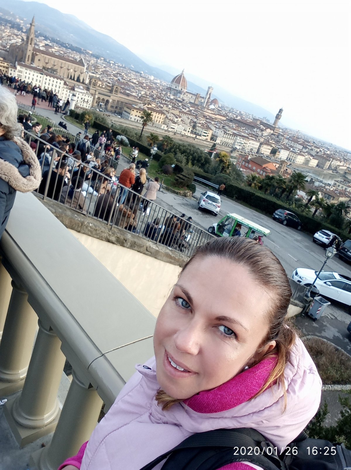 Ráno natěšeně vyrážím do víru velkoměsta. Památky tu opravdu lze najít na každém rohu. Určitě by popsání všech těch krás vystačilo na celou diplomovou práci. Já mám ovšem pouhý den a tak si naplánuji kolečko skrz ty největší pecky. Začínám v kostele Santa Maria di Novella , kde se chvíli zdržím a aspoň z dálky shlédnu vnitřek kostela, který je zrovna uzavřen kvůli probíhající mši. Dále pokračuji k Dómu, Santa Maria del Fiore. Po shlédnutí téměř dvou serií: Medicejové: Vládci Florencie se nemůžu dočkat, jak tato katedrála vypadá ve skutečnosti. Už při prvním pohledu jsem zůstala stát s otevřenou pusou a nestačila se divit. Jedním slovem nádhera! Kochám se a obcházím katedrálu několikrát. Vstupné na dnešní den je beznadějně vyprodané, ale to mi dvakrát nevadí. Počasí je velmi příjemné, na Sluníčku je to na triko a tak se mi uvnitř památek ani schovávat nechce. V uličce nedaleko si dávám velký kopec zmrzliny a vychutnávám si čilý ruch města. V poledne se už vyhřívám na mnohem poklidnějším místě - Piazza della Signoria. Dopřávám si krátký odpočinek a poté si projdu Palazzo Vecchio. Odsud už je to kousek k řece Arno a proslulému mostu Ponte Vecchio. Jeho zajímavostí jsou zlatnické krámky pocházející už z 16. století. Zhruba uprostřed je ideální místo k focení obou břehů řeky. Samozřejmě se to neobejde bez trochu trpělivosti a čekání. Davy turistů proudí v obou směrech a člověk se jich zbaví až na méně proslulém místě. V jedné takové zapadlejší uličce objevuji příjemnou italskou jídelnu, dávám si houbové lasagne se sklenkou suchého červeného vína a pozoruji stůl opodál s temperamentní skupinou Italů, kteří se nadšeně překřikují a smějí. Dopisuji deník a vyrážím na odpolední tůru přes Palazzo Pitti a Giardino delle Rose až na úžasnou vyhlídku na celé město, vlastně jsem o ní vůbec nevěděla a chtěla sejít ze zahrad zase dolů, ale protože davy turistů se hnaly strmě po vydlážděné cestě stále nahoru, šla jsem také. Slunce už skoro zapadalo a do této úžasné podvečerní atmosféry se otevřelo město v celé své kráse. Snad všichni ti co ještě odpoledne obdivovali některé ze stovek památek v centru jsou nyní tady a obdivují západ Slunce spolu s neskutečným výhledem na řeku Arno a celým městem. Tuto jedinečnou atmosféru skvěle doplňuje hrou na kytaru a zpěvem zřejmě místní umělkyně trochu nostalgickými rockovými baladami.Trochu na posledních chvíli běžím na nádraží, takže jsem se hned nezorientovala, z jaké koleje mi to jede.. naštěstí vše dopadlo dobře a v 18:10 už sedím ve vlaku do Luccy a užívám zaslouženého odpočinku a 19:30 už vystupuju v Lucce. Jdu směrem, kde by měl být hostel, ale adresu nemůžu najít, bloudím asi půl hodinky a naštěstí vidím pána, který zavírá svůj obchod a hned se zeptám, jestli mi může pomoct. Chudák, spěchal domů za rodinou a já ho takhle zdržím:). Cca za 10 min pomalé jízdy autem a hledání adres na plotech jedné ulice, jsme byli úspěšní. Děkovala jsem ještě, když jsme přes kód obdržený v smsce otvírala dveře domku, kde jsme měla zaplacené ubytování. Trochu strašidelné, ale já se těšila na sprchu a postel.