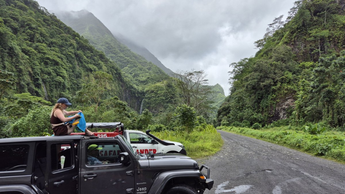 Znova sme si pôvodne nechceli požičať auto, ale okolnosti nás donútili. Náš prvotný plán bol, si urobiť inland tour cez cestovnú kanceláriu (6.000 XPF), ale majiteľ ubytovania nás presvedčil, že požičanie auta a objavovanie miesta vlastnou osou nás vyjde lacnejšie ako kancelária a mal pravdu.