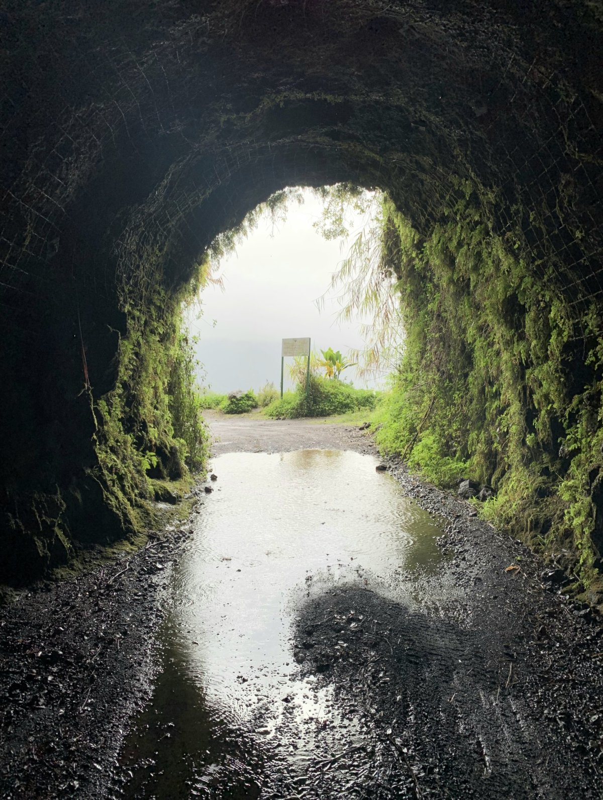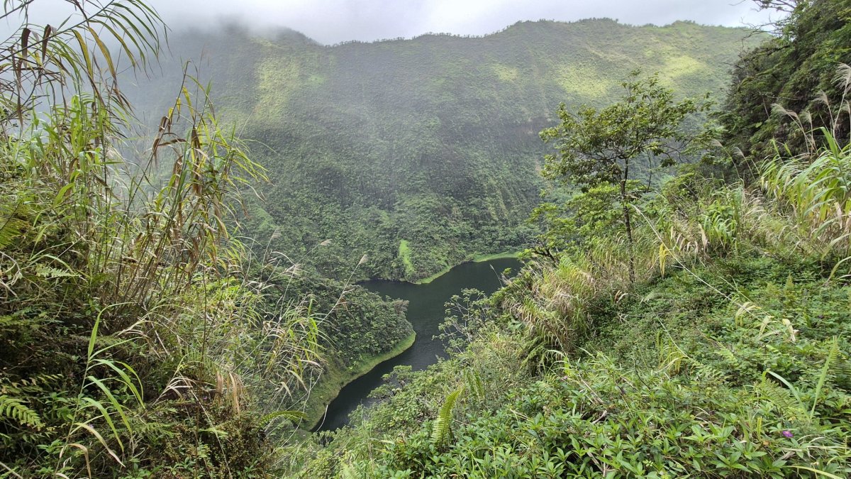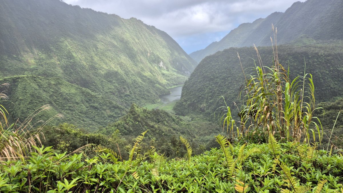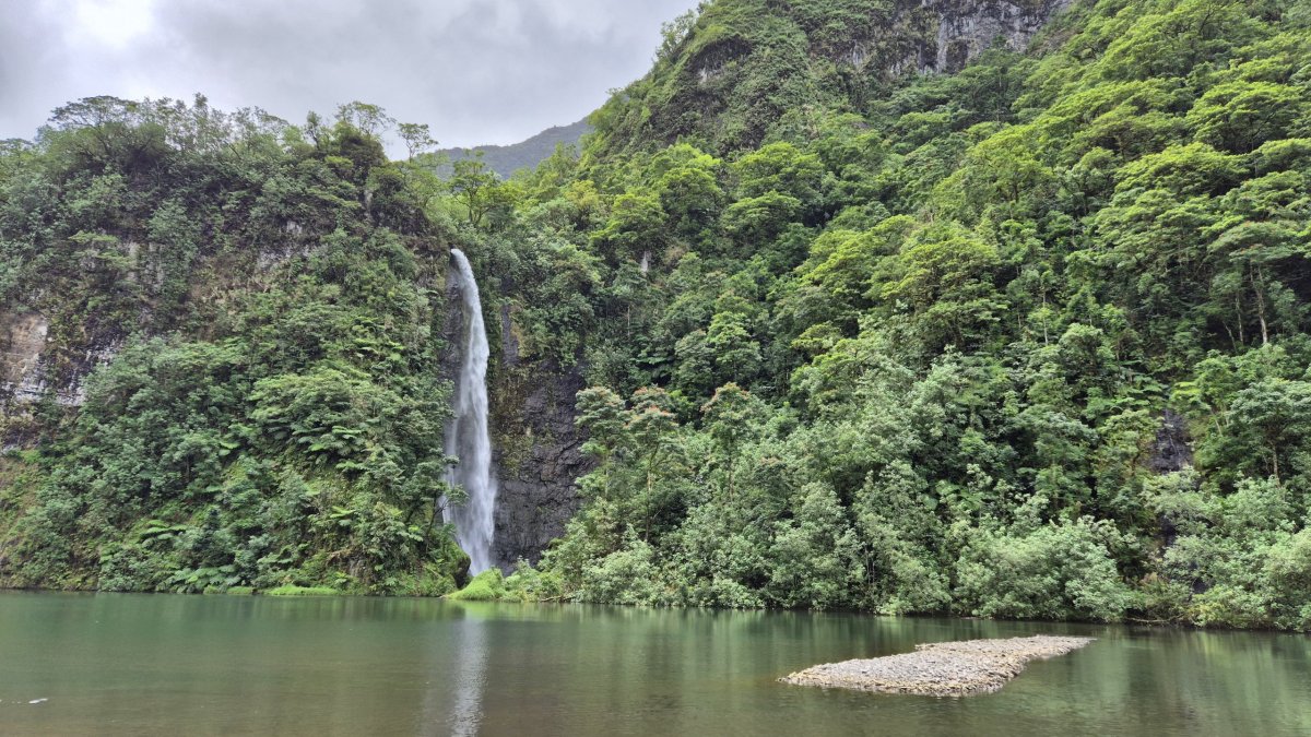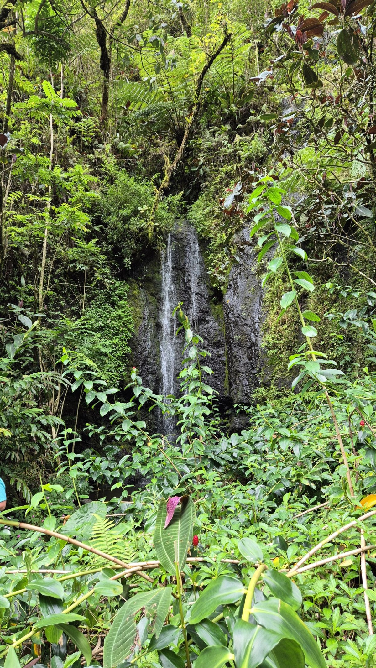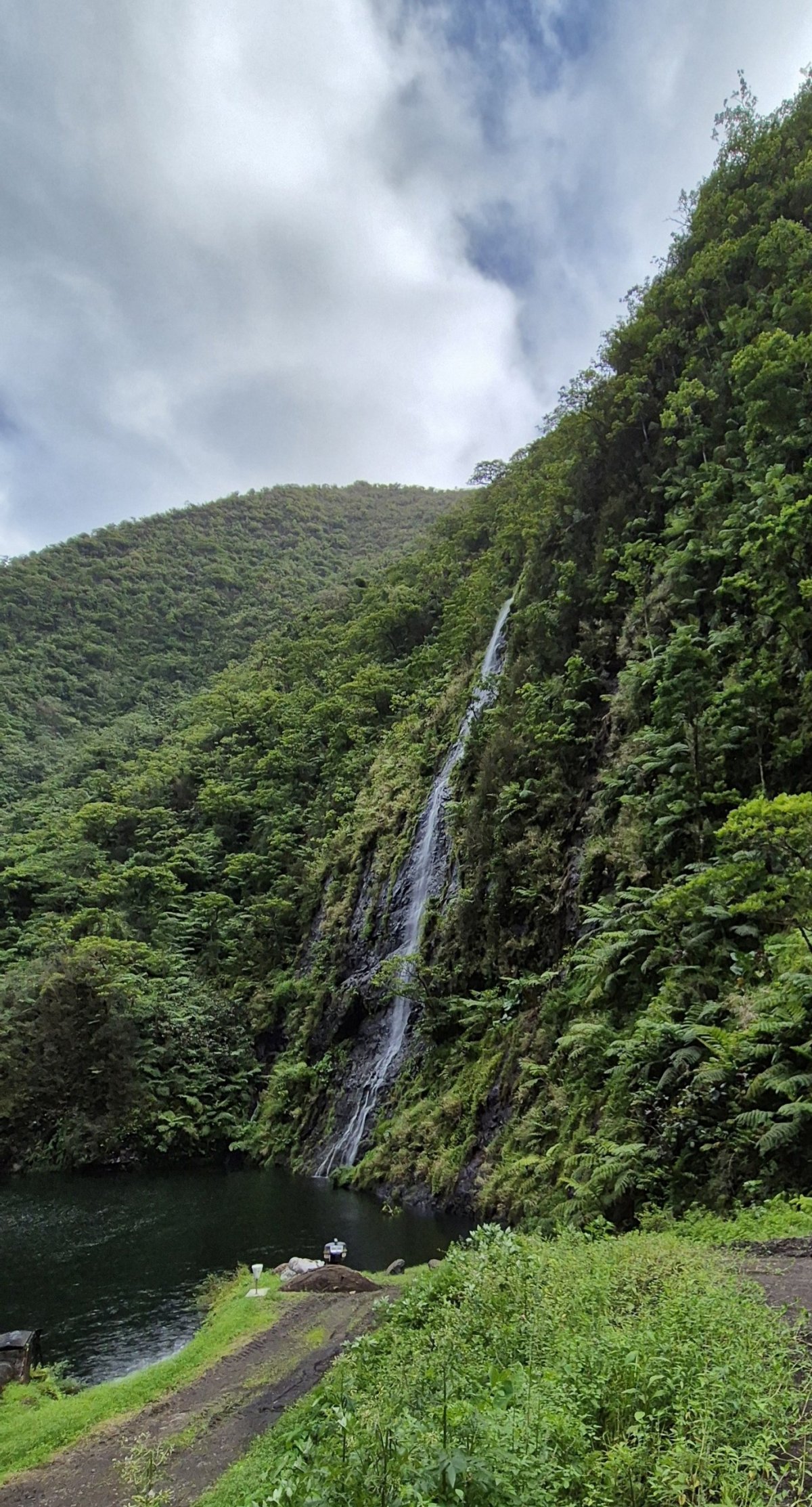 Naša prvá zastávka pri potoku, stále neviem dôvod prečo sme tam zastavili, bola o tom, že sprievodca povedal 2 vety po anglicky a potom kecal asi 10 minút s francúzmi. Ďalšia zastávka bol výhľad na vodopády, takže som mohol konečne začať fotiť. Zastávka bola zase príliš dlhá, 2 vety po anglicky, 15 minút kecania po francúzsky. Toto sa postupne opakovala aj na ďalšej zastávke, ale viet po anglicky začalo trochu pribúdať. Sprievodca nám pri brode s mostom ukázal pôvodné rastliny ako vanilku, tapioky, sliepky a sladkovodné úhory. Na zastávke sme pobudli 40 minút, podľa mňa zase zbytočne veľa. Ďalej nás čakala cesta vnútrozemím a stopka pri nádrži. Jej účel neviem, lebo nám to nebolo vysvetlené. Nasledoval obed v lokálnej reštarácii in-the-middle-of-nowhere v džungli. Na jedálnom lístku sme si mohli objednať rôzne veci s hranolkami ale napr. aj kačacie prsa alebo tiramisu, veď kto by si nedal také menu v trópoch?