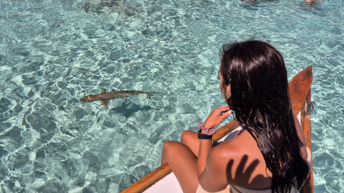 Ďalší deň nás čakal šnorchlovací výlet spoločnosťou Moorea Miti Tours na pol dňa (70 eur). Ak by sme nemali auto, tak fakt neviem ako by sme sa dostali do prístavu, kde nás čakal náš sprievodca. Lodička nás povozila popri pobreží, sprievodca vysvetlil miestnu kultúru a príbehy. Na pár minút sme zastavili na plytčine, kde sa zdržiavajú raje a malé žraloky a s týmito morskými potvorkami sme si mohli zaplávať. Potom nás ešte čakalo šnorchlovanie v okolí Motu Tiahnura a nakoniec nás čln odviezol na pobrežie, kde nás šofér odviezol k nášmu autu. Väčšina turistov mala zaplatený celodenný výlet, ktorý ešte zahŕňal obed a jedno ďalšie miesto na šnorchlovanie, ale ten pol deň mi prišiel akurát.