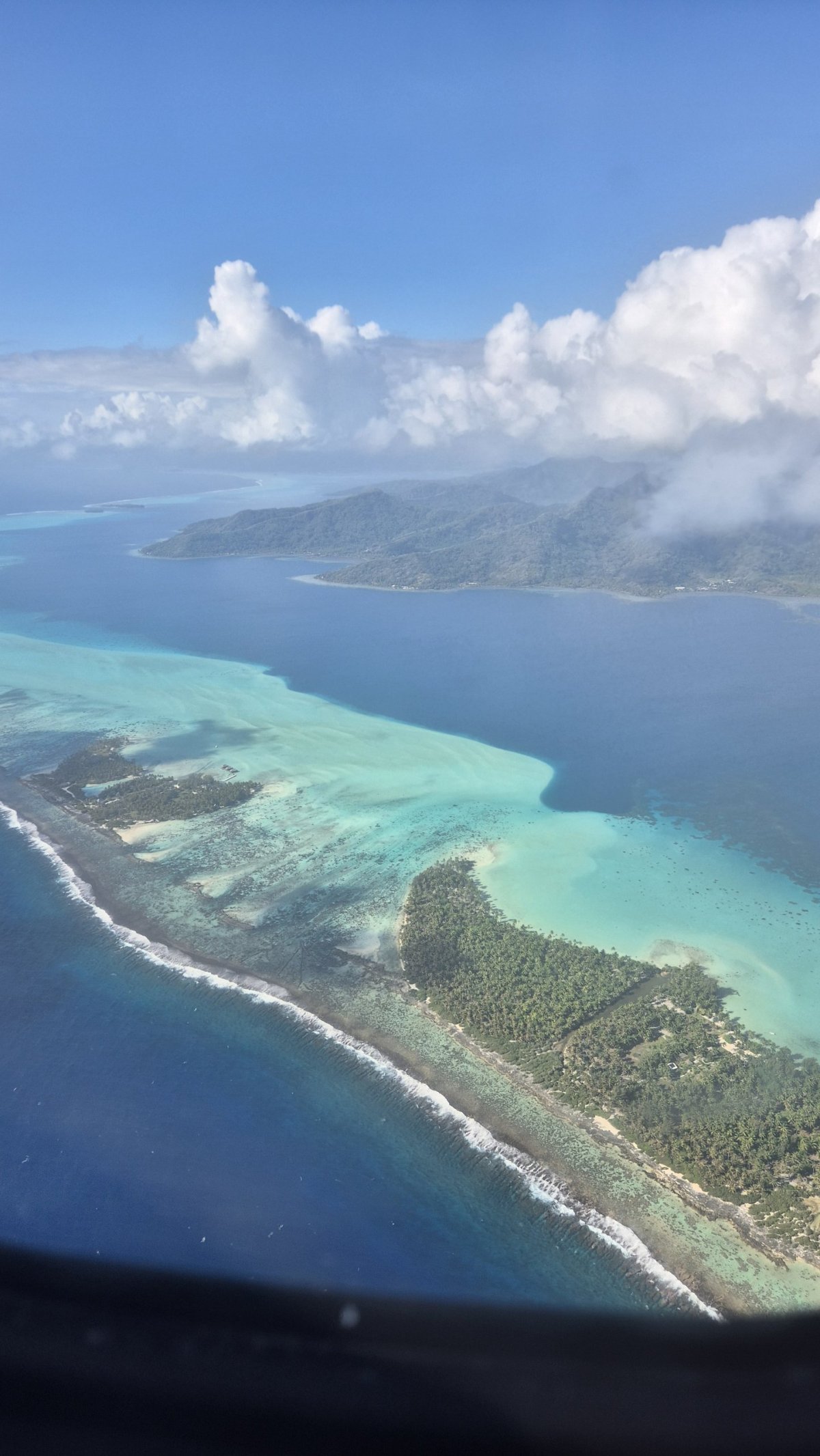 Na ostrov sa dá ísť aj trajektom, ale my sme využili prvú časť nášho Air Tahiti Passu. Ubytovanie na ostrove som niekoľkokrát menil a úplne na poslednú chvíľu sa tam objavili bungalovy Miki Miki Surf Lodge blízko, vraj najkrajšej pláži Tamea. Keď som sa pozrel na mapu, tak som si hovoril, že auto na ostrove potrebovať nebudeme, lebo ubytovanie a hlavná pláž sú blízko a na zvyšok môžeme použiť autobus.