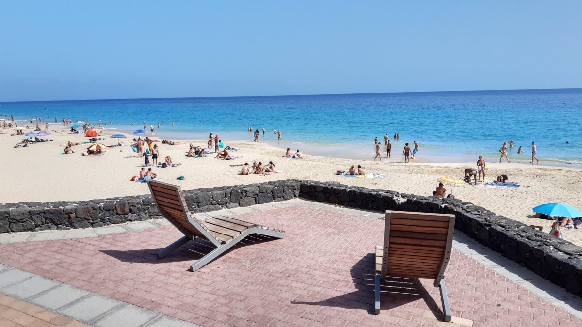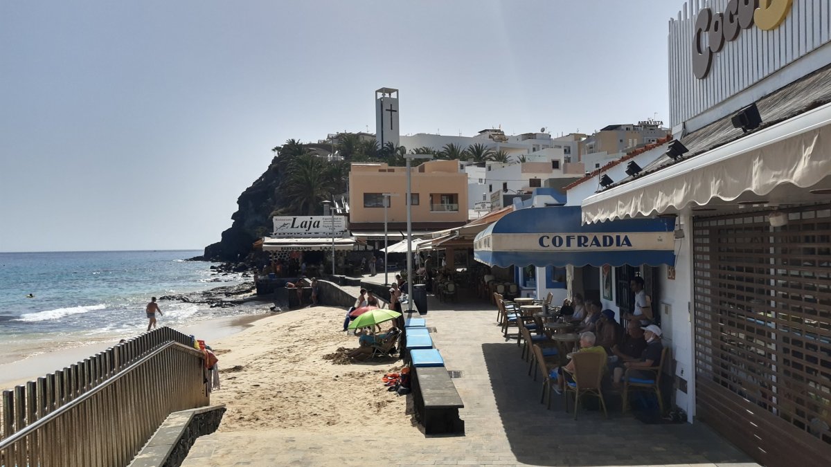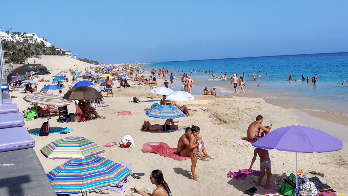 My při návratu pokračujeme rovnou do centra Morro Jable, které je dnes stále ještě i celkem normálním městečkem, nejenom turistickým rezortem. A jsme skutečně zaskočeni počtem lidí na městské pláži, která je na místní poměry celkem přeplněná. Jak ale zjišťujeme v dalších dnech, jedná se o naprosto ojedinělý úkaz, obzvlášť v této době.