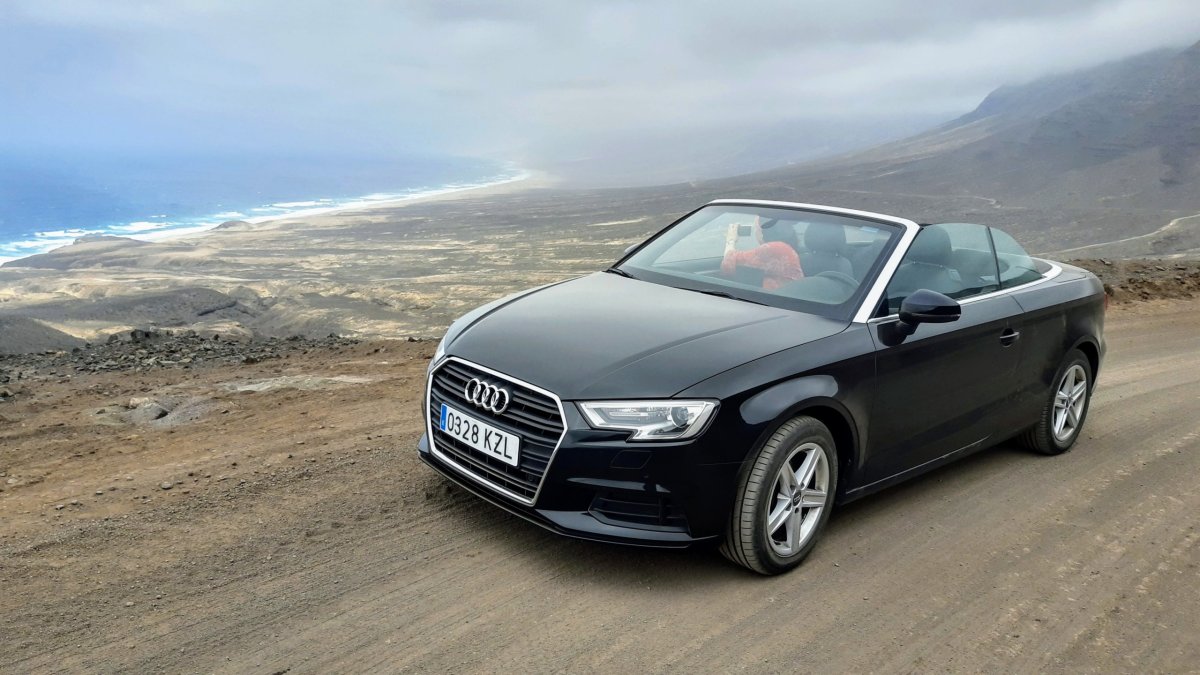 V době našeho pobytu (konec července) bylo možné pořídit pronájem těch nejmenších aut za ceny jindy těžko představitelné – od 35 EUR na týden (!!!). I my jsme využili jedinečných cenových podmínek a za cenu jindy běžnou za normální malé auto jsme si vypůjčili Audinu v kabrioletu, která normálně a bez pojištění stojí víc než 2 letenky na Kanáry dohromady.