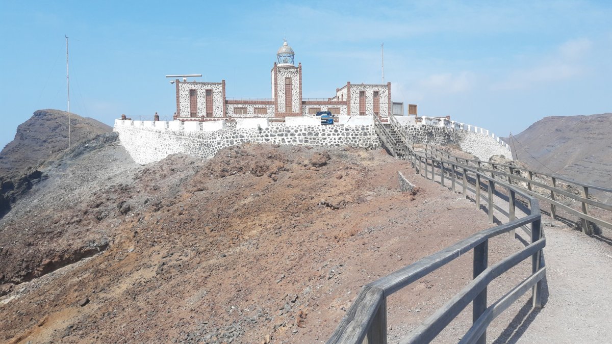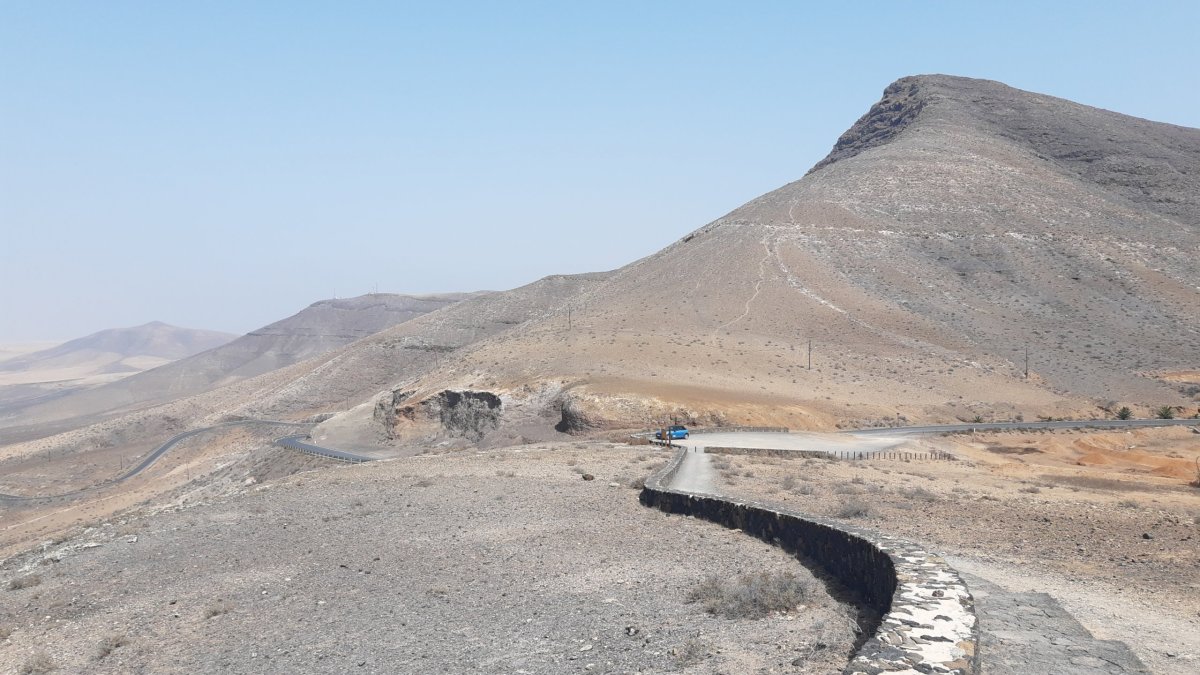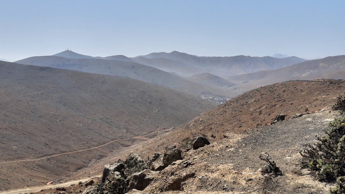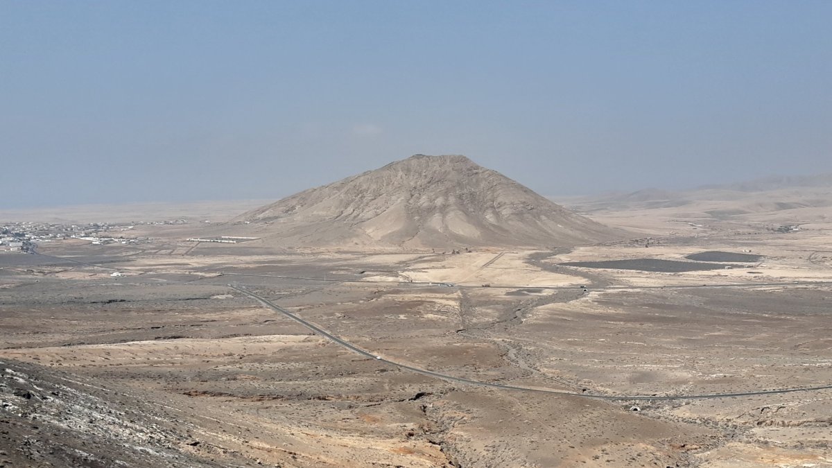 Další zastávkou je vyhlídka Morro Velosa. Závora u hlavní cesty je na rozdíl od loňska zvednutá, takže úzkou cestou stoupáme na vrchol, kde je restaurace a muzeum. Brána je ale zavřená, vše je stále mimo provoz. Procházíme se po vrcholu, ze kterého může být skutečně pěkná vyhlídka na severní část ostrova. Tentokrát tomu tak není. Tak jako prakticky po celou dobu naší letošní návštěvy Fuerty zde totiž panuje calima – saharský písek ve vzduchu, a rozhled není nic moc. Nahoře jsme úplně sami.