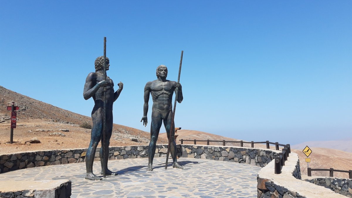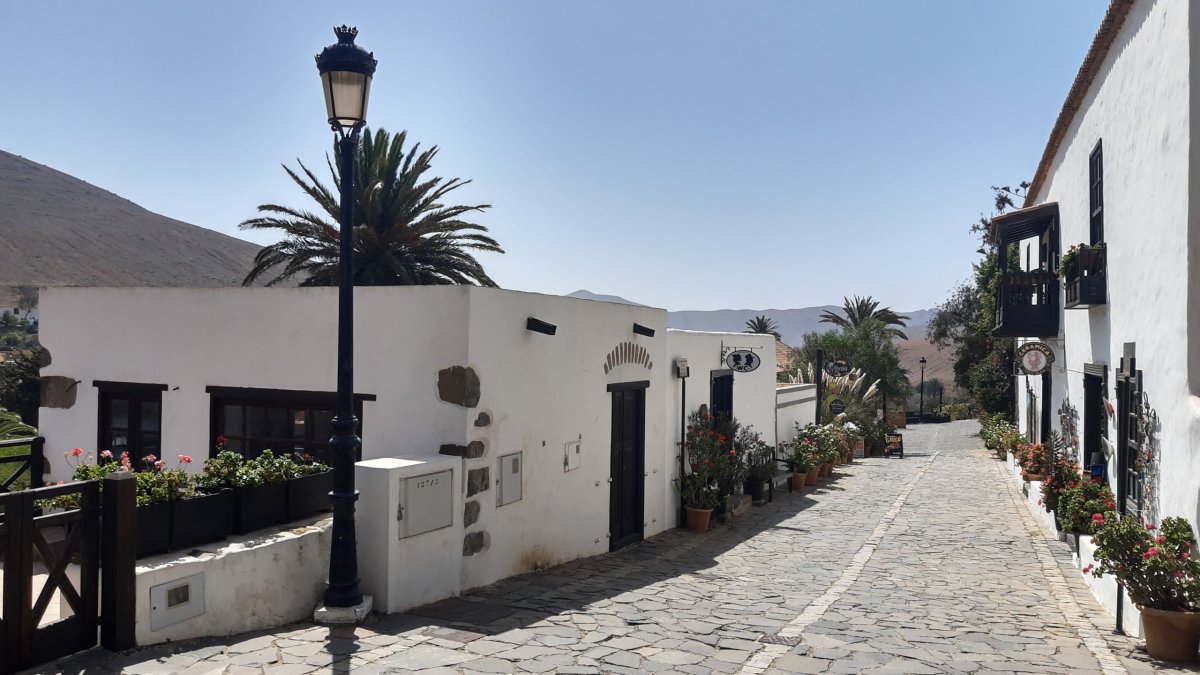 Pak pokračujeme do nedalekého sedla k nadživotním sochám indiánských náčelníků a po krátké zastávce sjíždíme serpentinami do Betancurie, malebného městečka a bývalého hlavního města ostrova, které je zelenou oázou obklopenou kopci ve vyprahlé krajině. Na spodním parkovišti, kde od naší poslední návštěvy dorazilo zelené šílenství a vyrostla nabíječka pro elektromobily, parkuje asi 20 aut.