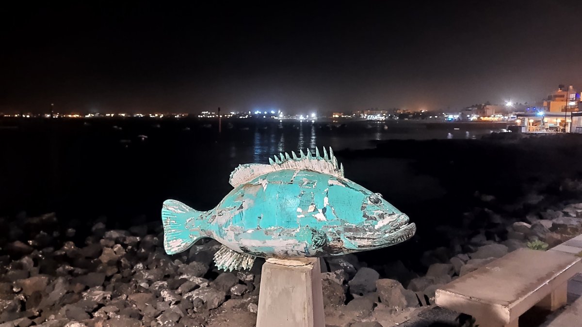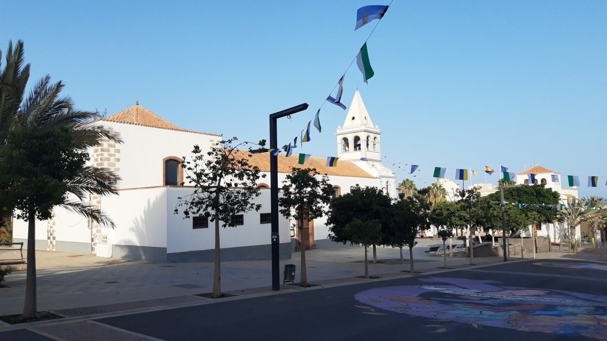Protože se zde už kvůli vlnám nedá koupat, přesunujeme se 20 kiláků na jih nad Puerto del Rosario do Puerto Lajas, kde jsme už loni objevili pláž bez vln. Tak je tomu v silném větru i tentokrát, super koupání v pozdním odpoledni a na celé dlouhé pláži asi tak dvě desítky lidí. Sledujeme i normalizující se letecký provoz, v některých chvílích odlétá letadlo co 5 minut. V podvečer zajíždíme do hlavního města, kde se procházíme po městské promenádě. Město je z poloviny uzavřené, je tu nějaká pouť či co, městem duní hudba a kolotoče. I zde je vidět, jak se situace za rok změnila – loni zde bylo až na pár zatoulaných turistů úplně mrtvo, tentokrát si to zde žilo svým obvyklým ospalým sobotním životem, kdy se zahrádky podniků v zapadajícím slunci postupně plní převážně místními. I my si sedáme před jeden z nich a zkoušíme pár místních tapas. Po západu slunce jedeme do Corraleja, tentokrát volíme rychlejší cestu po dálnici. Vyrážíme na poslední obchůzku městem a v rušné ulici plné barů u přístavu se s Fuertou loučíme posledním točeným kouskem.