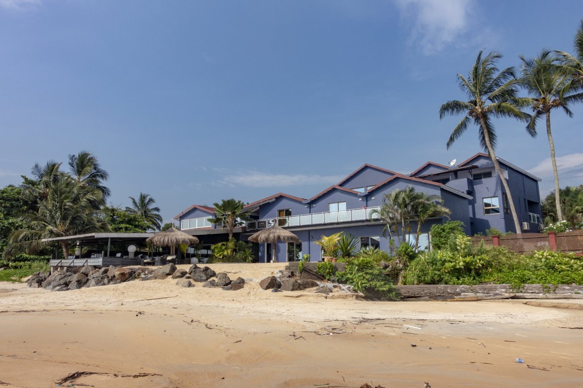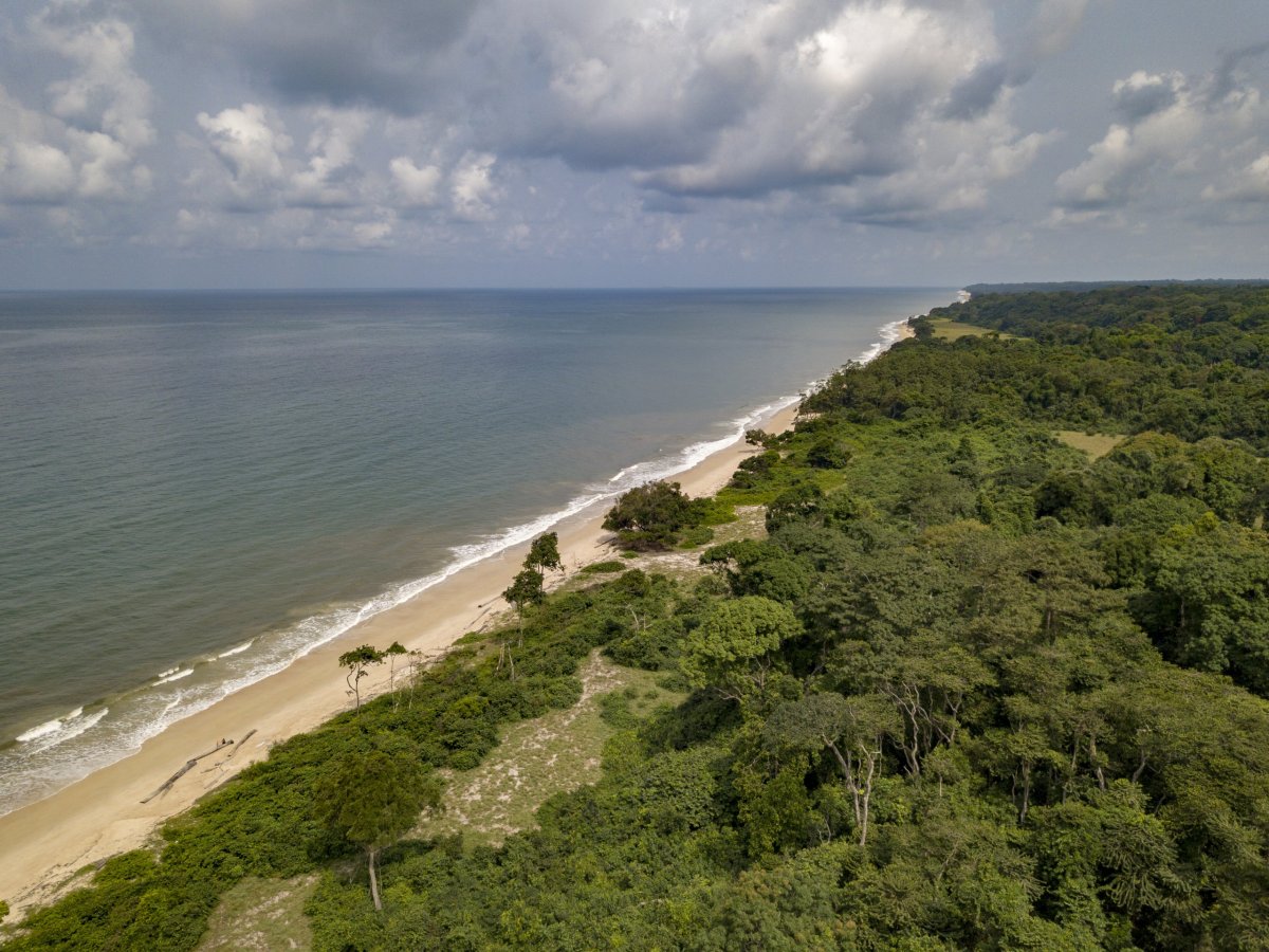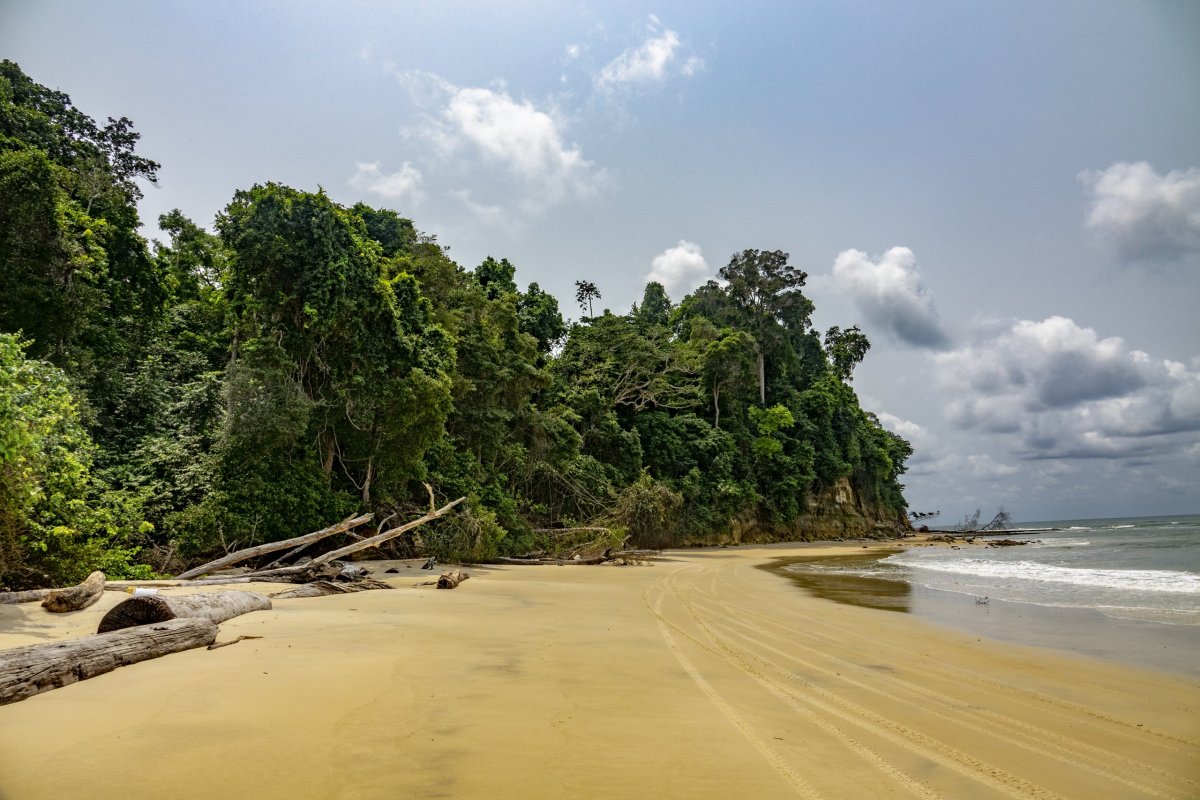 Pongara Lodge jsou jen pár metrů od pobřeží oceánu. Je to opět kouzelné místo, s velmi milostivým pobřežím. Všechny odpadky vyvržené oceánem jsou většinou až v okolní vegetaci, takže nejsou na první pohled vidět.