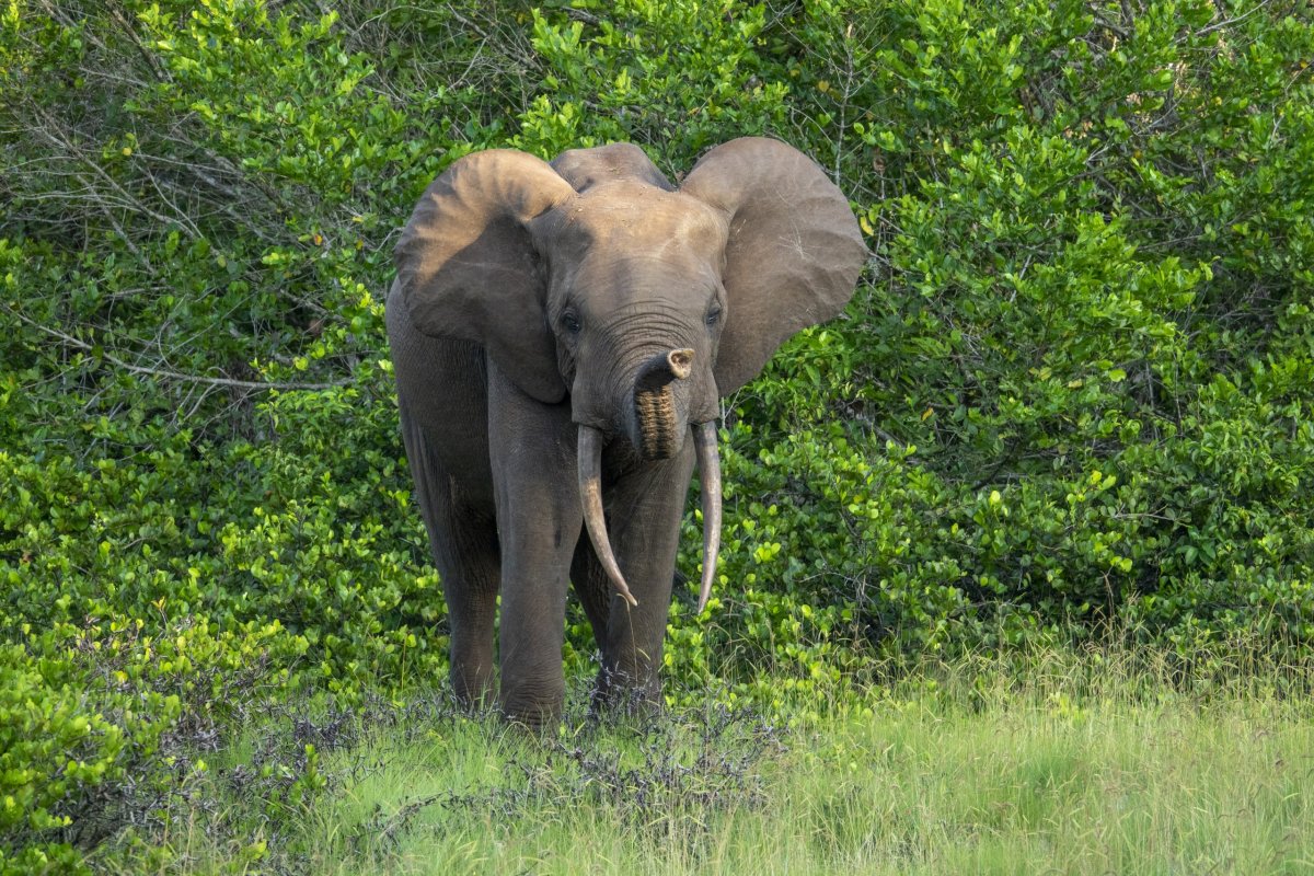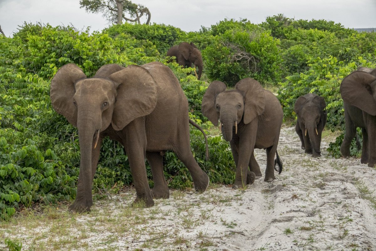 Mezi prvními zvířaty, která tady můžeme vidět jsou sloni pralesní, jež jsou drobnou kopií slonů afrických. Jejich výška je zhruba poloviční a nedávné genetické studie dokonce prokázaly, že se jedná o samostatný druh. Dokonce bylo dokázáno, že slon pralesní má geneticky blíž k vyhynulému slonu evropskému než k africkým slonům.