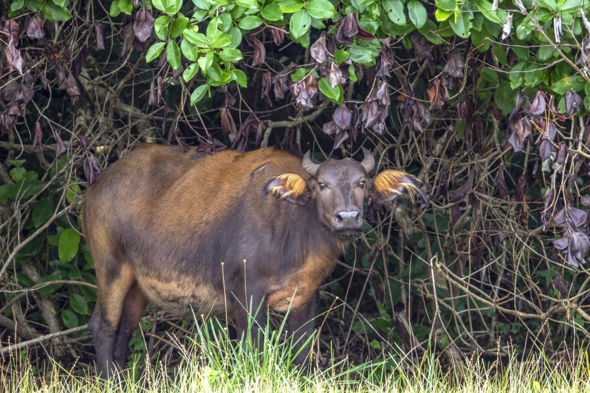 Dočkáme se i dalšího zvířete a to buvola pralesního. Je to nejmenší poddruh buvola afrického. Buvoli pralesní se od buvola afrického liší nejen váhou a velikostí, ale také svou červenohnědou barvou srsti.