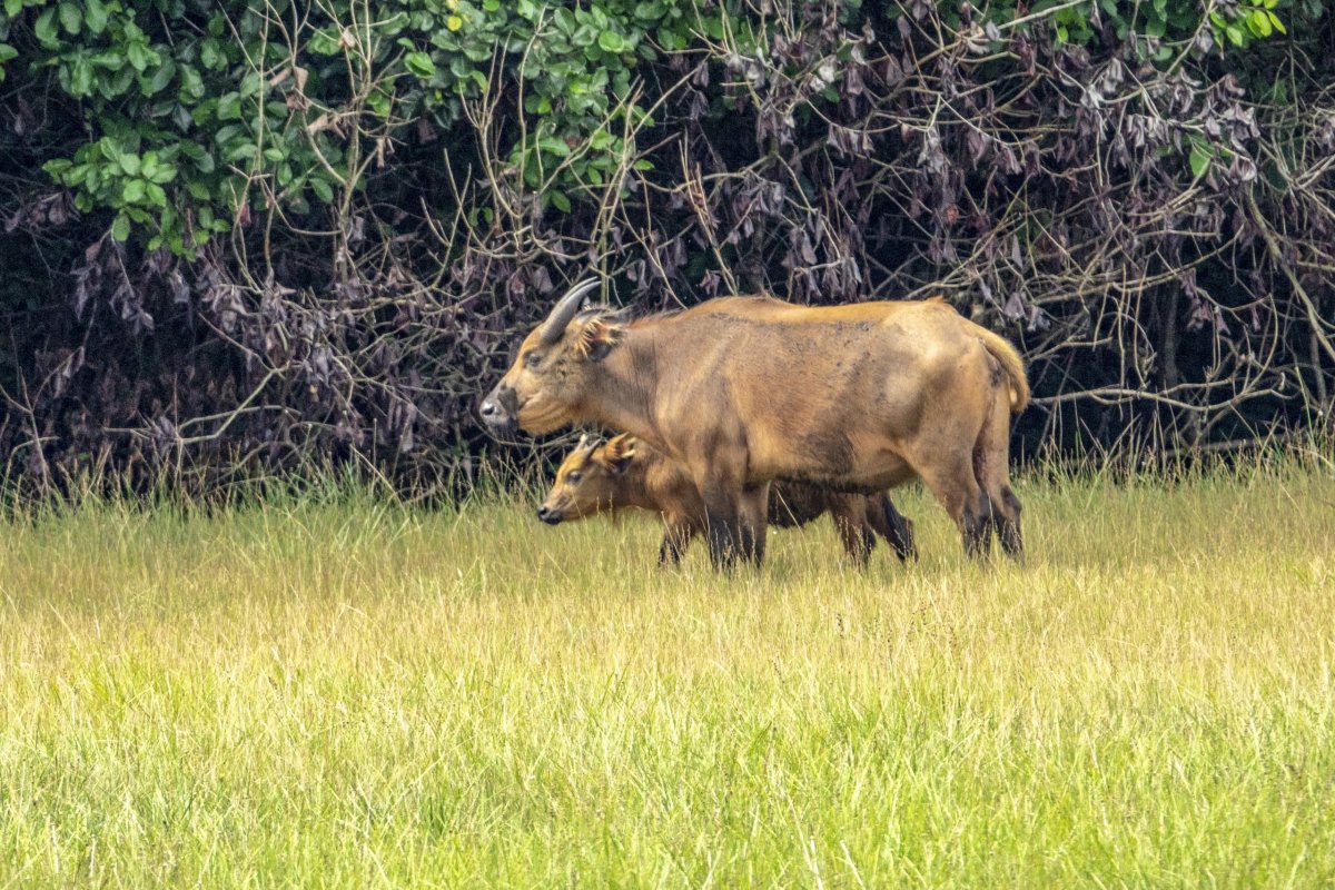 Tak jak sloni pralesní ani buvoli pralesní nevytváří tak velká stáda jako jejich větší bratranci.