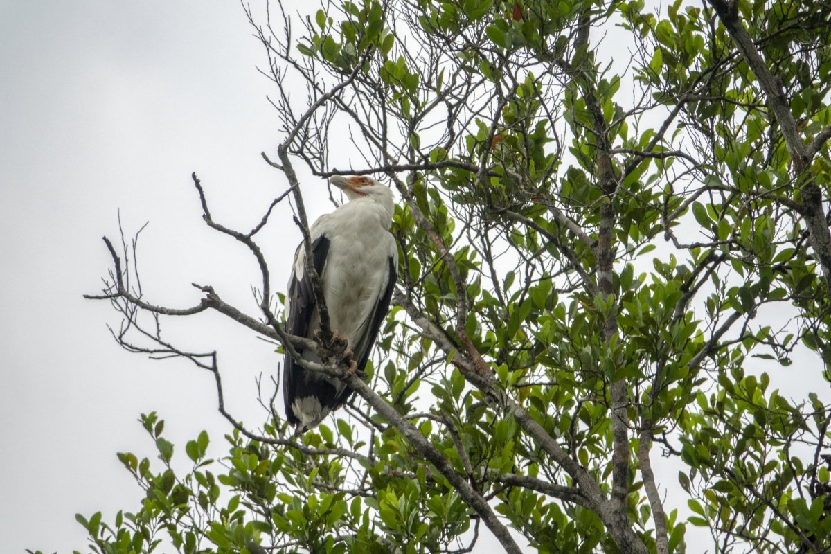 Cestou po laguně nám poměrně dlouho trvá, než vůbec objevíme nějaké zvíře. Až po delší době narazíme na hnízdo orlosupa palmového a máme možnost vidět jak krmí svoje mládě.