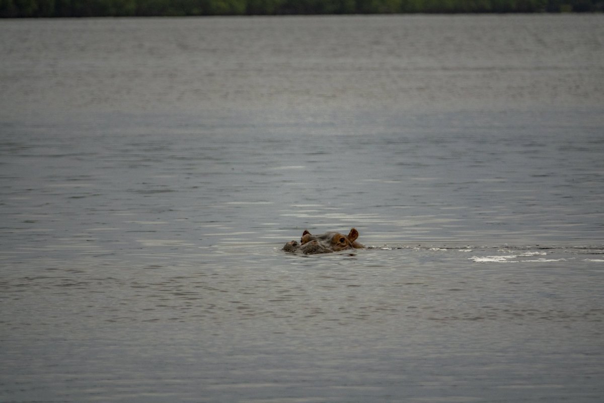 Dalším fotografickým úlovkem na laguně je vykouknutá hlava hrocha. Hroch nám dal šanci na vyfocení v podobě asi třiceti vteřin a pak už jsme ho ani žádného jiného neviděli.