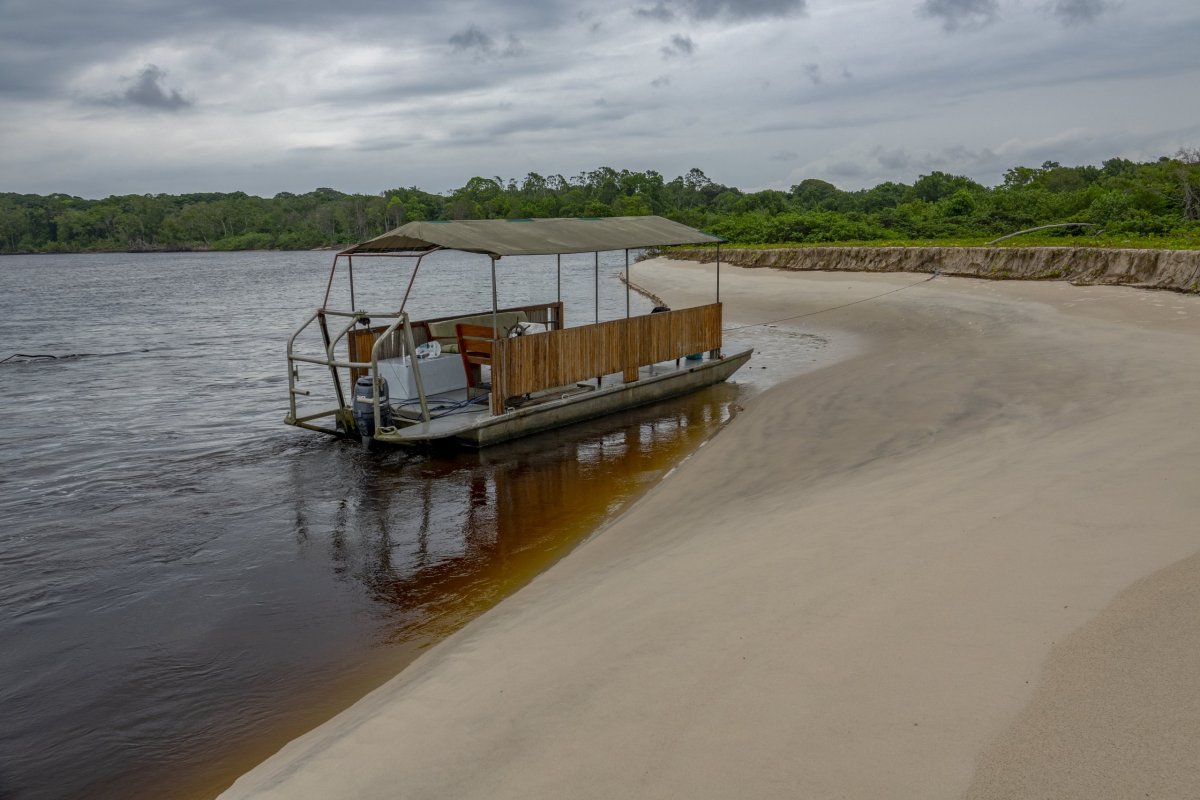 Druhou naší destinací v Gabonu je Narodní park Pongara. Vracíme se nekonečnou cestou do Port Gentil , přelet do Libreville a odtud asi hodinová cesta lodí podél pobřeží na Pongara Lodge. Tady po cestě míjíme ještě několik ubytování, ale ty naše jsou nejdál, což je pozitivní.