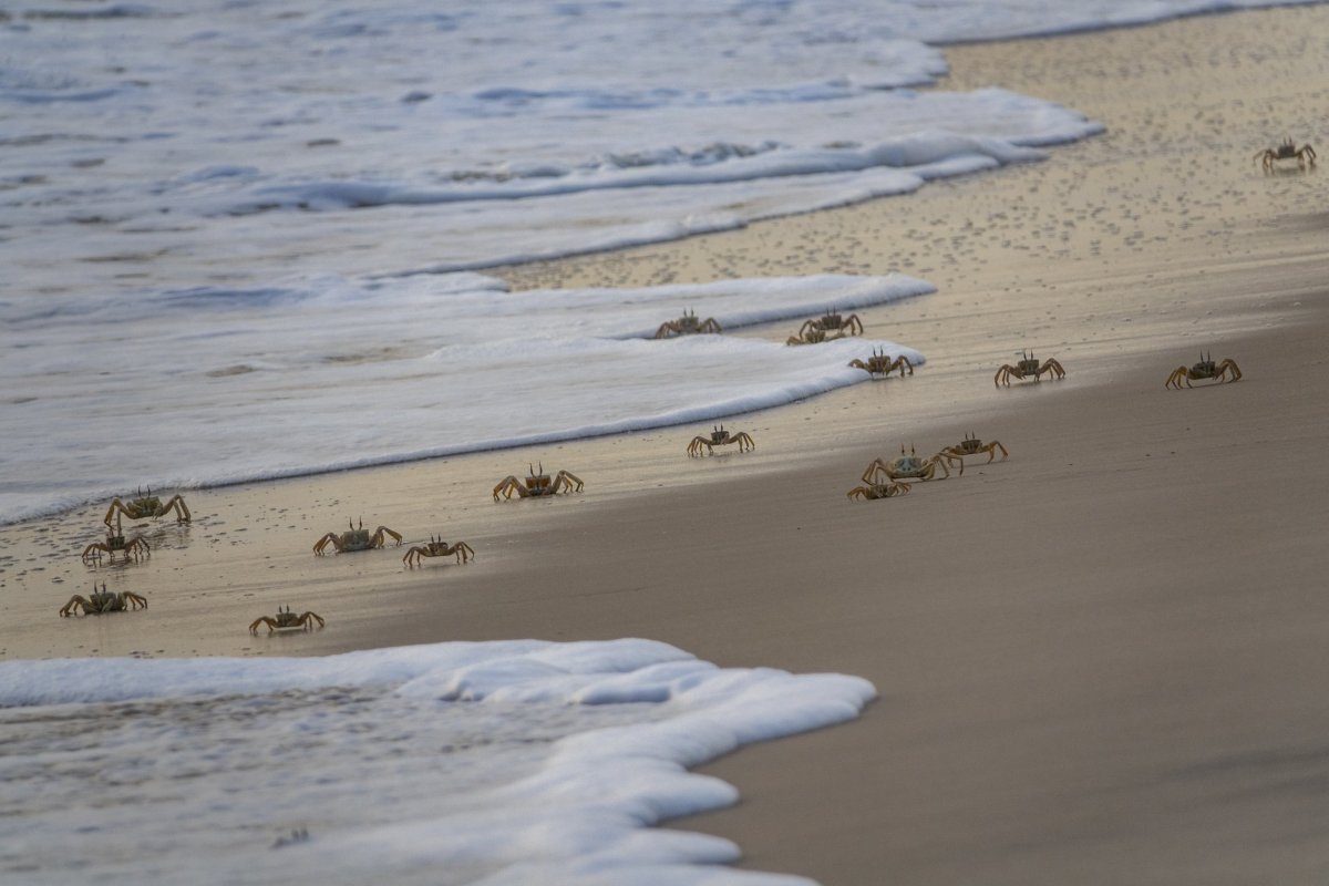 Pobyt v Národním parku Loango končíme na pobřeží oceánu. Pláž je plná krabů, jejich počet sice nepředčí odpadky, zato nemají problém s naší přítomností.