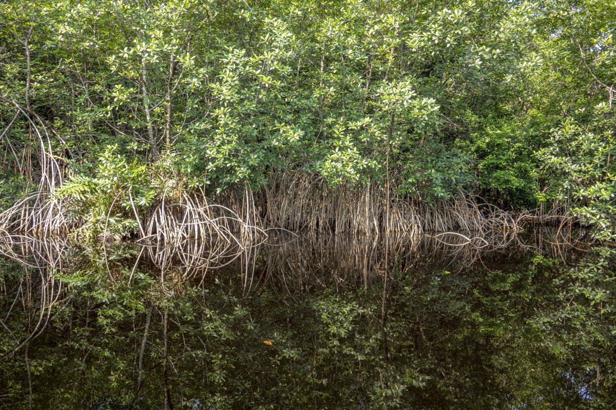 Výlet zakončujeme mezi mangrovy. Bohužel ani tady, ač je tu čarokrásná příroda, nezahlédneme jediné zvíře. V podstatě ani ptáci tady nejsou. Z pohledu pozorování zvířat je to opravdu tragédie. Dokonce jsme tady v Loango parku nenatočili žádné záběry místních divokých prasat. Když jsme je v jednom okamžiku objevili, tak než jsme se dokázali přiblížit tak, aby byli vyfotitelní, zmizeli nám v lese.