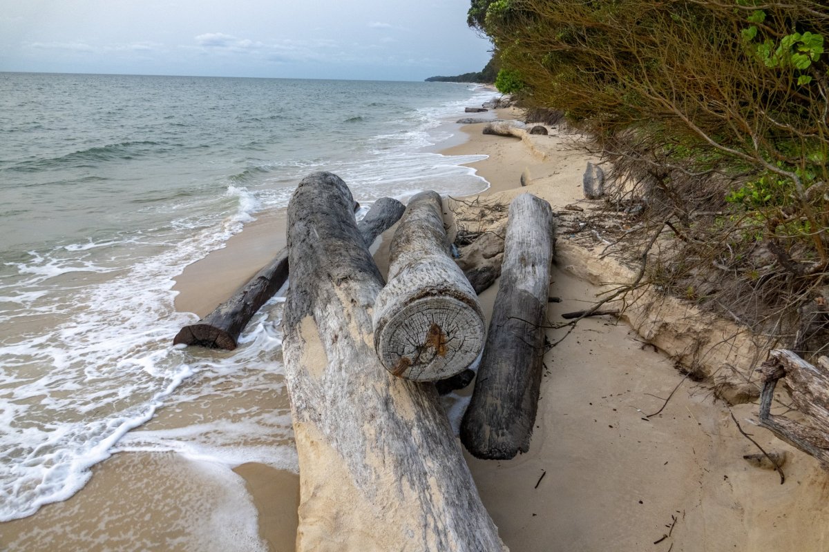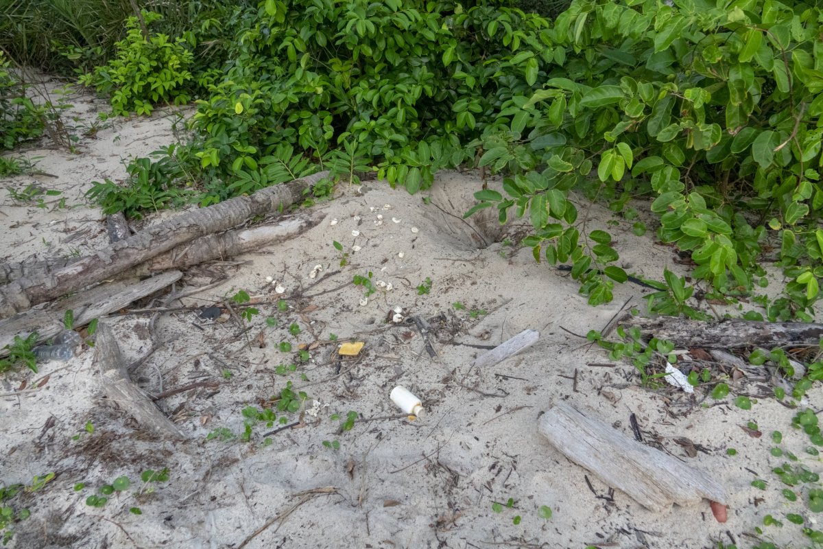 Že je pobřeží, kde želvy kladou vajíčka, zamořené odpadky není samozřejmě chybou jen Gabonu. Další tragédií odehrávající se na tomto pobřeží jsou kmeny stromů z tady ztroskotané lodi. Želvy za nimi často uvíznou a uhynou.