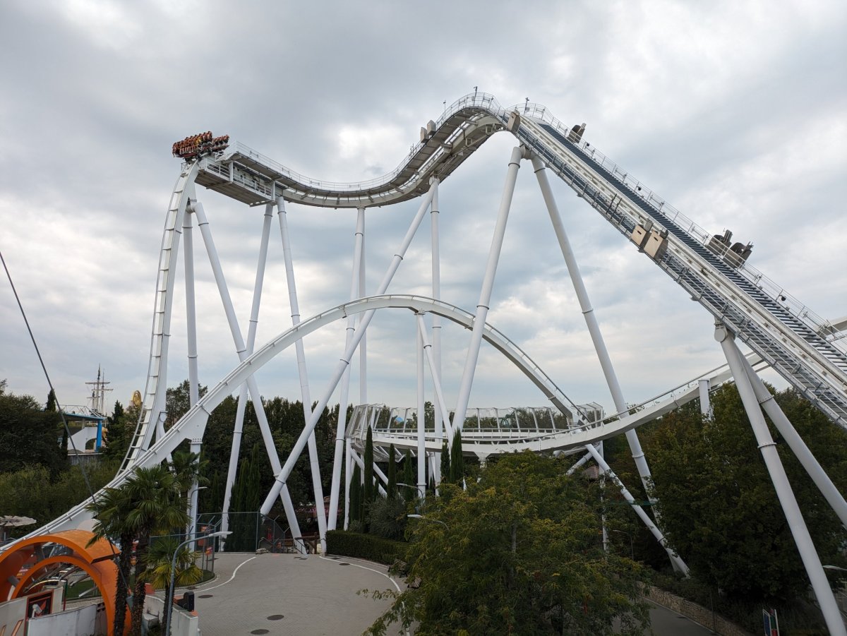 Gardaland. Jako milovníci horských drah jsme se na tento den všichni těšili. Všední den je pro zábavní park ideální. Vzhledem k roční době v parku nebylo tolik lidí a tak jsme stihli všechny atrakce, mnohé z nich několikrát a s minimálním čekáním. Jako v každém parku, je dobré mít v mobilu nainstalovanou jejich aplikaci, kde jsou vidět online čekací doby. Případně jde použít stránka https://queue-times.com/parks/12/queue_time. Prakticky to ale nebylo potřeba kvůli nízkému počtu návštěvníků. Když byla některá atrakce zábavná, nebyl problém ji obíhat pořád dokola. Jako nejhorší roller-coaster se ukázal Shaman, který měl některé zatáčky opravdu nepříjemné a člověk si omlátil hlavu o zádržný systém sedačky. Velmi zábavné atrakce Raptor a Oblivion. Volný pád Space Vertigo překvapil, padal nečekaně rychle - v jiných parcích je pád mnohem víc bržděný.