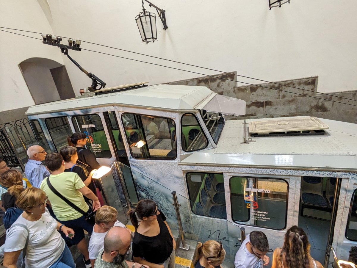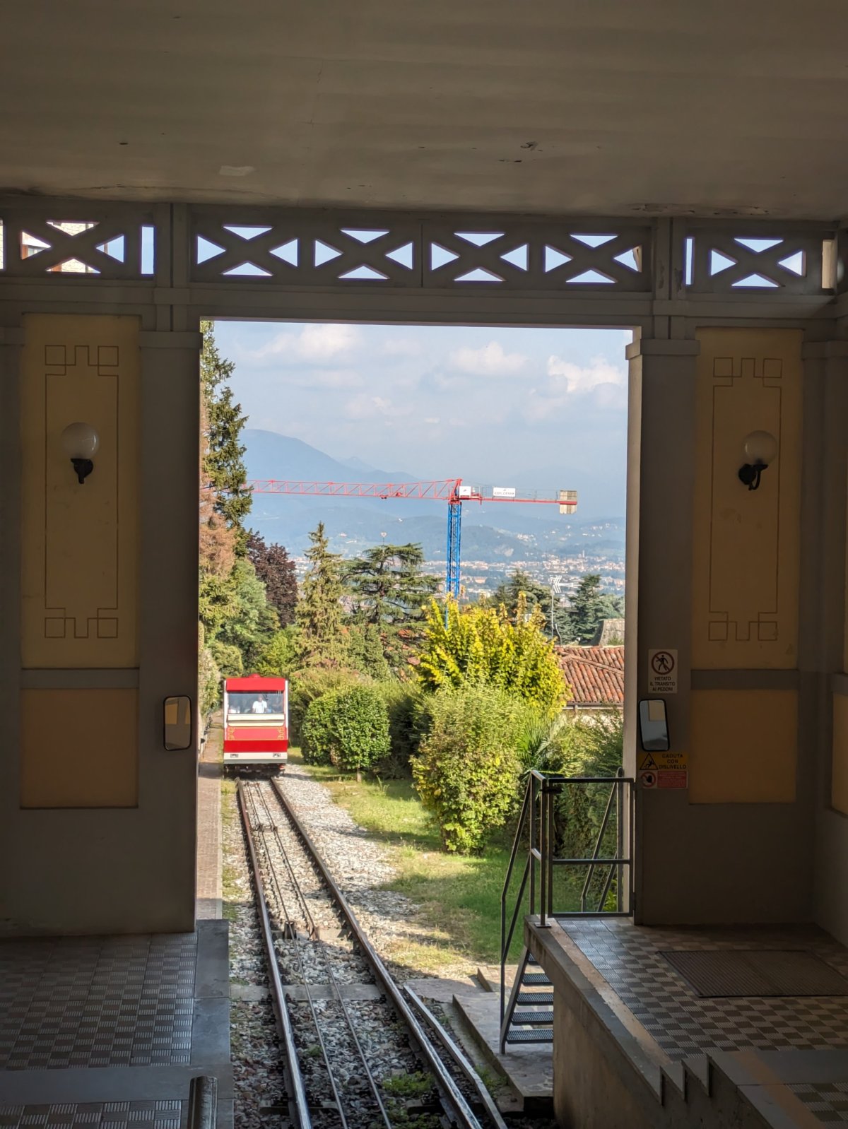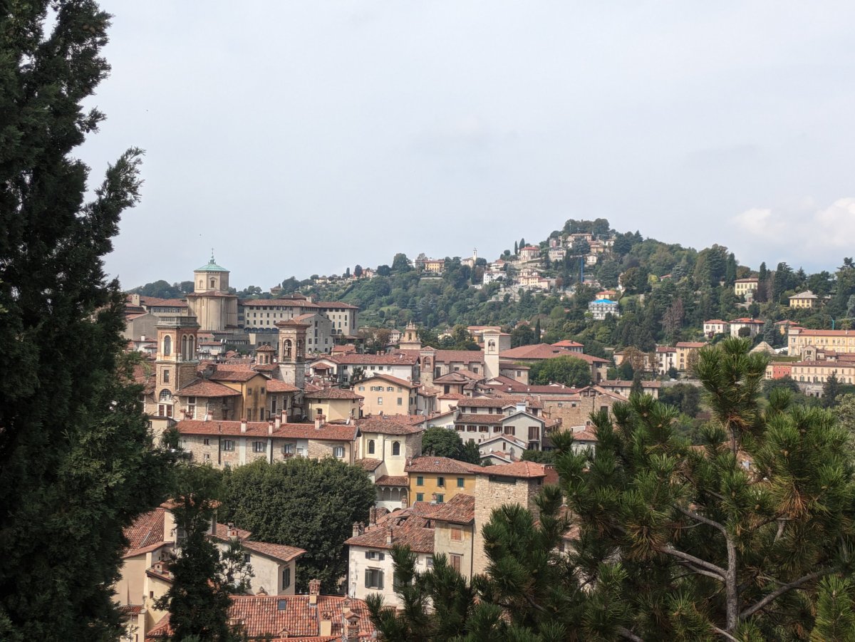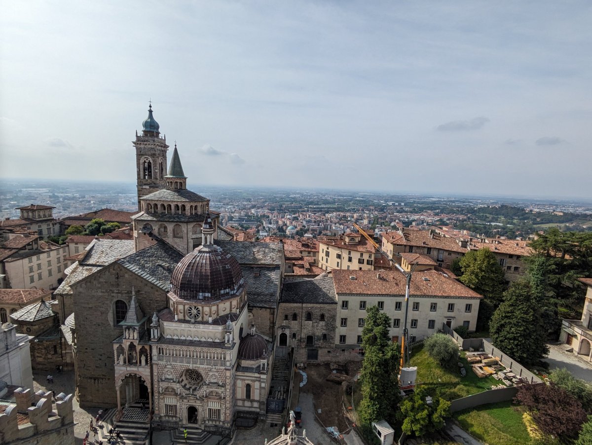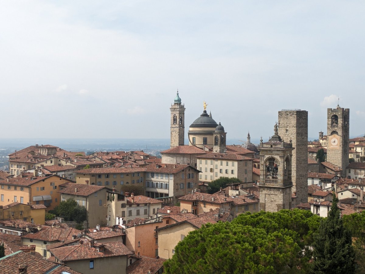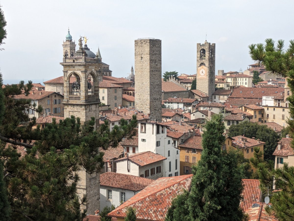 Bergamo. Zaparkovali jsme na placeném parkovišti u nádraží a vydali se směrem k historickému centru hlavní ulicí Viale Papa Giovanni XXIII. Divné bylo, že všude chodili lidé ve svítivých žlutých tričkách. Asi nějaký běžecký závod, říkali jsme si. Když jsme dorazili k věži Torre dei caduti, řada z těch lidí čekala na vstup. Asi mají čas před startem a tak jdou na vyhlídku. Nedalo mi to a cestou jsem se snažil ve vyhledávači najít, o jakou akci jde. Za chvíli jsem to našel - akce se jmenuje Millegradini 2023 (https://www.millegradini.it) a v roce 2023 se koná 16. a 17. září. Ten druhý den je právě dnes! V těchto dvou dnech se otevřou všechny významné památky a turistická místa v Bergamu. Pro registrované účastníky akce jsou vstupy zdarma, případně s významnou slevou! Jenže ouha, online registrace jsou už zavřené. Tak to jsme prošvihli.