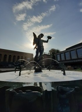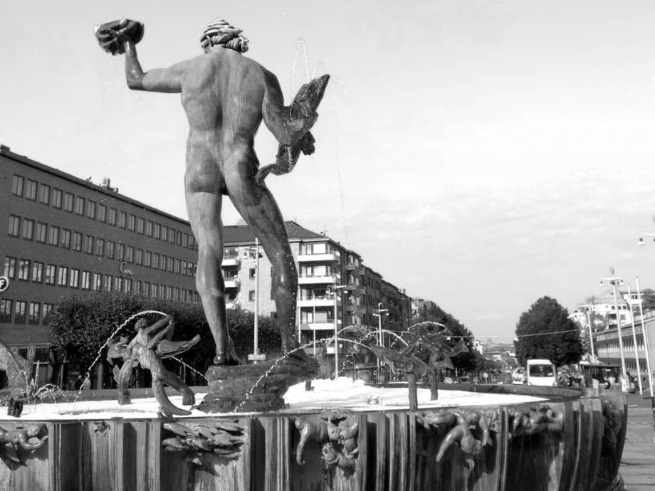 druhý den_Hned ráno zamíříme k soše Poseidona, která údajně měla tak velké přirození, až se to obyvatelů města nelíbilo a tak jej museli zmenšit, vzhledem k velikosti postavy ho ale zmenšili zase nepřiměřeně hodně. Dostáváme se k přístavu, kde objevuji naše plánované ubytování. Tři noci se snídaní měli vyjít na 3885 Kč, což oproti 2700 Kč mi nepřišel až takový rozdíl. Celkem mě lákalo bydlet na lodi, a cena nebyla o tolik vyšší. Jedná se o Hotel Barken Viking, najdete na bookingu. Bohužel kvůli koroně jsem s rezervováním váhala do poslední chvíle a poté už se cena zvedla. Loď si aspoň projdeme. Zajdeme i k nejstarší budově ve městě postavené roku 1643, kde si nakonec dáme kávu a posedíme chvíli na sluníčku. Počasí nám vyšlo suprově, v ČR prší a brácha tady chodí v kraťasech. Půjčíme si místní kolo a jedeme se projet cyklostezkou kolem přístavu. Poté si půjčíme kolo ještě jednou, abychom přejeli most, protože pravděpodobně brzy bude zbourán a nahradí jej nový, modernější. Rybí kostel Feskekorka není kostel v pravém slova smyslu, i když na první pohled tak vypadá. Bohužel i toto tržiště s rybami je zavřené.