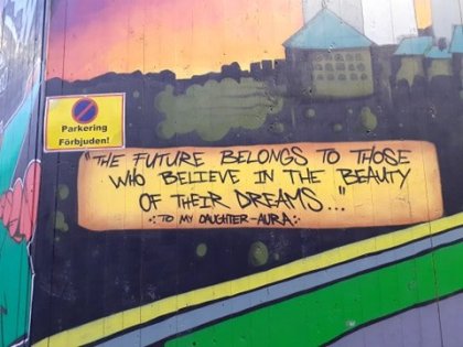 první den_Ráno budíček a hurá do Prahy, auto necháváme na střešním parkovišti Šestky. Let je klidný, samozřejmě roušky. Hned ve Švédsku je můžeme odhodit. Roušky se nenosí nikde, vše funguje, pouze akce nad 50 lidí jsou zrušené. Jízdenku na autobus od společnosti Flygbussana (jezdí tam i Flixbus) na cestu z letiště jednoduše kupujeme v automatu a autobus jede na čas. Od zastávky to máme 11 minut chůze k hotelu. Na check-in je brzo a tak tam pouze necháváme zavazadla a razíme do městě. Bohužel zjišťujeme, že zábavní park Liseberg z roku je 1923 kvůli covidu uzavřen, stejně tak i muzeum Volva. Ve městě projdeme kolem fotbalových stadionů, na krásném vlakovém nádraží si dáme kafe a poté se již ocitáme v centru, což poznáme díky kanálům. Prochází město křížem krážem. Na jídlo se stavíme v Burgerkingu, který se nachází na začátku krásné čtvrti Haga. Burger, hranolky a cola nás vyjde v přepočtu na 160 korun. Večer zakončíme výstupem na místní rotundu, odkud se nám vyskytne krásný výhled na město. Skansen Lejonet byl postaven v roce 1687, byl vybudován jako obranná pevnost. Velmi krásné jsou pouliční malby, které jsou rozmístěné po celém městě.