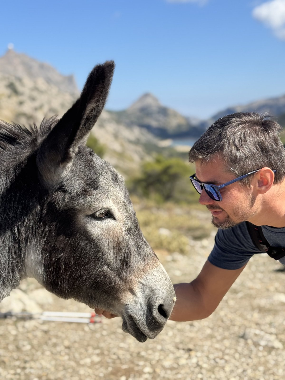 Dnes to bude vesměs z kopce a dole po rovince. Vychází to na slabých 5 hodin a 17km. Zdraví se hodně zlepšilo, problém je jen koleno a čéška. Ta se ozývá nejdřív jen při schodové sestupu, později i při rovince. Opět jsem rád za hole, o to víc je využívám. Na konci dne už cítím silné svaly na rameni, ale díky tomu, že váhu pravé víc drží ruka na této straně. No prostě staroba 😃 sestup do údolí je lepší než včera, sem tam prudší, ale mění se zase ráz krajiny. Je to tu zelenější, aspoň trochu, víc koz a ovcí a zahrad. Někteří tento úsek nechodí, ale sbíhají do Pollençy, což chápeme a vidíme. Jde to, ale ne dnes pro nás.