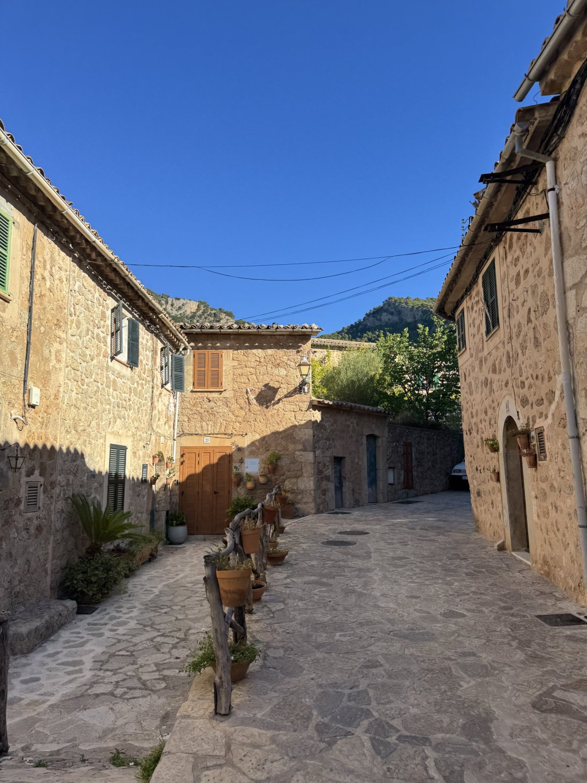A cesta dolů je snad ještě náročnějším než nahoru, hlavně na kolena. Jsem rád, když postupně narovnává a docházíme do města Deià. Tady se rozhodneme pro občerstvovací zastávku tentokrát místo kafča 3:30 celé nějaké velké hlavní jídlo. Nakonec nás spolkne nějaká moc pěkná restaurace naprosto skvělý Burgr s křupavým kuřecím masem a paní si dává čerstvé parpadelle. Zpěvem zázvorovým drinkem přichází myšlenka těch posledních 9 kilometrů dojet busem. Nejdřív se mi to nezdá, přijde mi to škoda, ale pak souhlasím a nakonec jsem za to nesmírně rád! Rozhodujeme se tak s rozumem a vědomí, že zítra nás čeká úplně nejtěžší den a převýšení přes 1600 metrů.