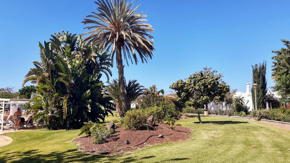 Když přijíždíme k ubytovacímu rezortu, horko těžko hledáme parkování. Nakonec nacházíme díky rozměrům našeho autíčka poslední místo v místním „poli“. Ubytování, které známe z let minulých, se nachází kousek od místního golfového hřiště a i když jde o průmyslový umělý rezort, zde typicky kruhový kolem centrálního bazénu, na druhou stranu jde o ubytování abnormálně poklidné a v nádherné subtropické zahradě se spoustou palem, dračích stromů a jiné mně neznámé flóry.