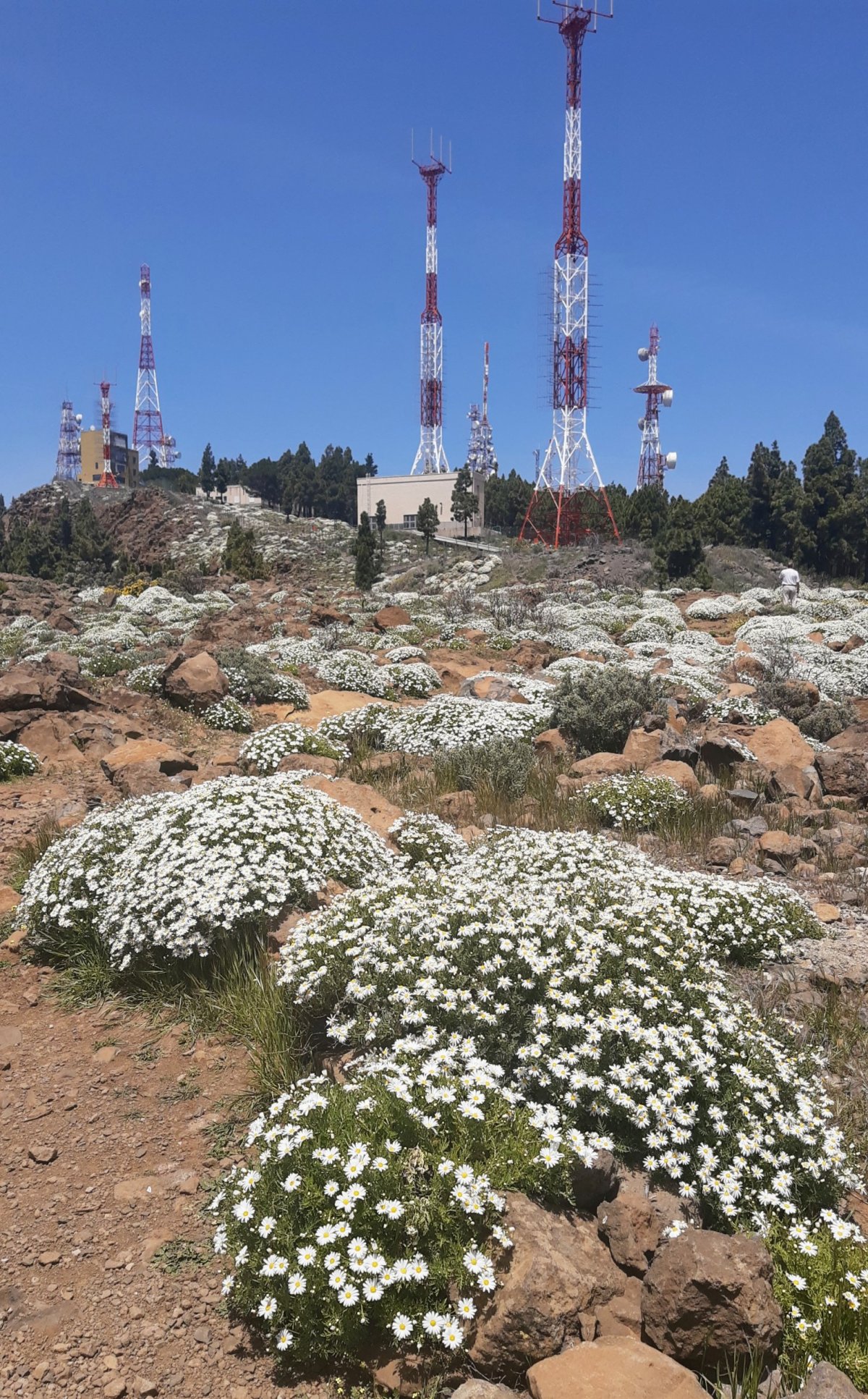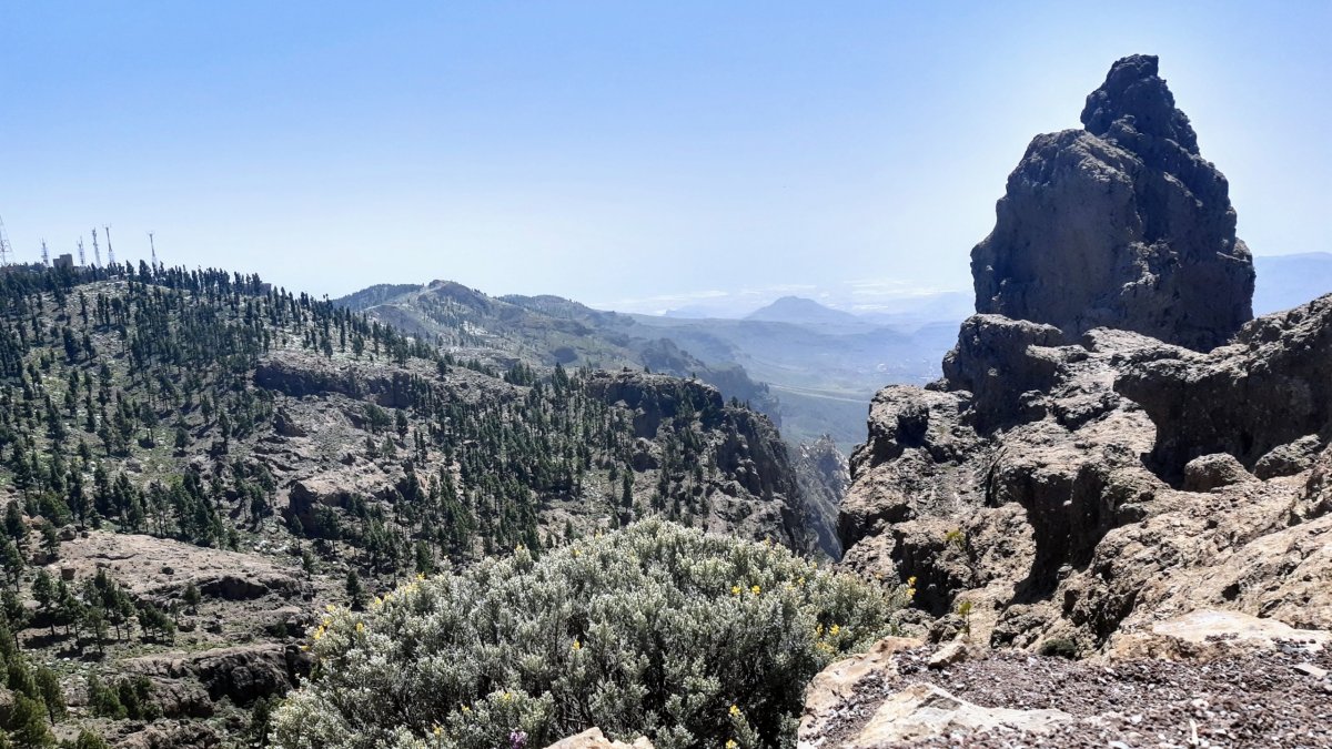 Druhý den, kdy to hrozí jednoznačně hezkým počasím a teploty už přesahují i na místní poměry nadstandardní třicíku, stahujeme střechu našeho Miníka a vyrážíme do hor, kolem Roque Nublo k nejvyššímu vrcholu ostrova, ze kterého je na rozdíl od zamračených Vánoc konečně vidět na všechny strany. Cestou míjíme i přeplněná místní „pařeniště“ v borovicových lesích, plná místních, kteří zde grilováním slaví velikonoční volno. Zdravíme i kolonu vytuněných historických bavoráků. A od vyhlídku u radaru, kde končí většina turistů, pokračujeme i na druhou vyhlídku směrem na sever, kde je naprosté minimum lidí. A zde vidíme GC v úplně jiných barvách, než jsme jej doposud znali. Teď v dubnu je ostrov krásně rozkvetlý, zelený, a v těchto nejvyšších partích hraje všemi barvami. Některé louky dokonce svým travním porostem evokují naši domovinu.