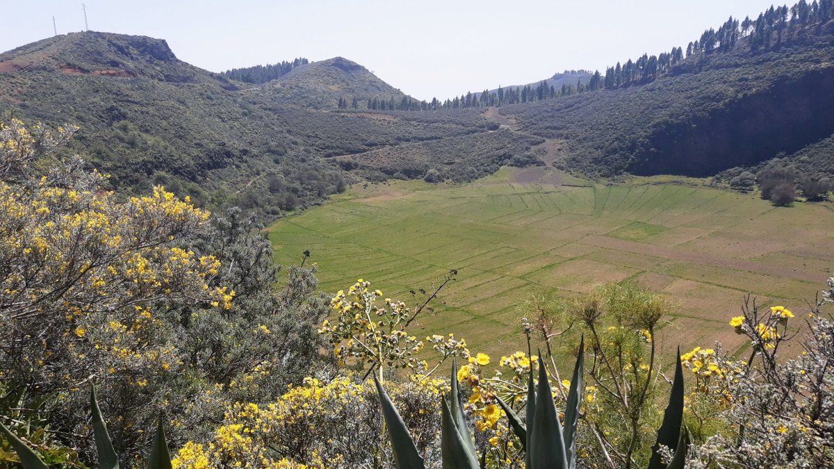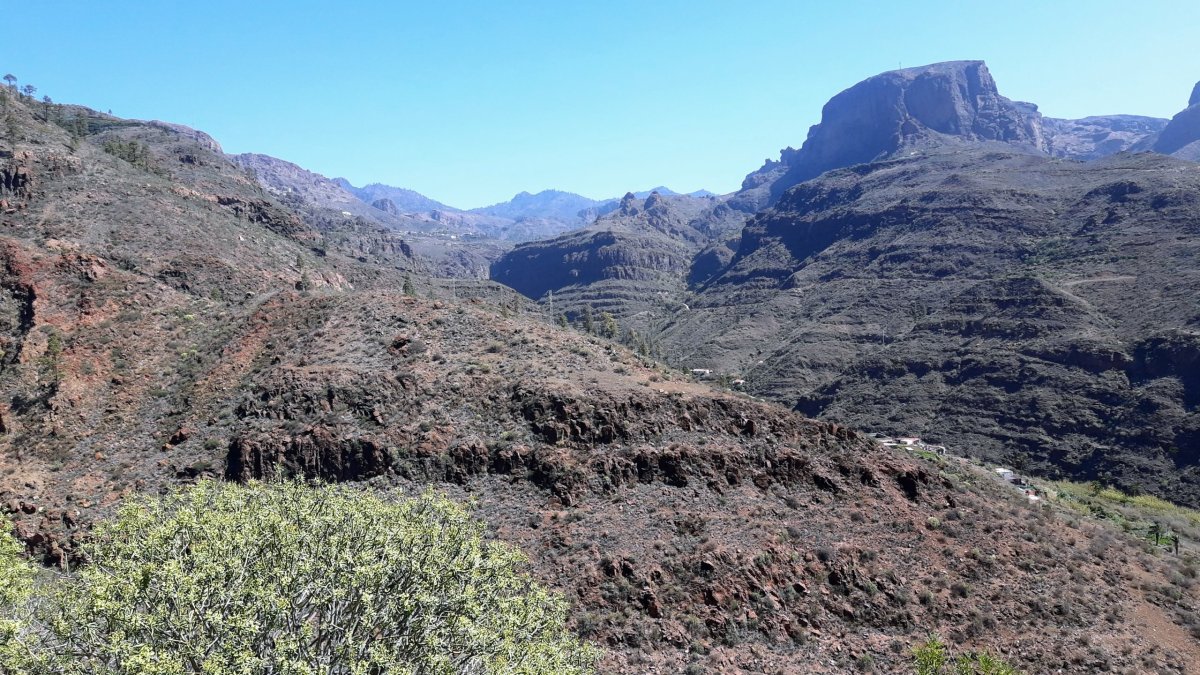 Další den, kdy už teploty spadly ke snesitelnému normálu obvyklému pro toto období a i calima GC opustila, takže viditelnost byla nadstandardní, vyrážíme na celodenní výlet na sever do míst, která jsme si „pošetřili“ z minulých návštěv. Dlouhým údolím po silnici GC505 míříme na sever, nejprve plochým údolím, pak cesta začne prudce stoupat v serpentinách a nám se otevírají parádní výhledy na vnitrozemí ostrova, což je zde něco ve stylu Arizony a Grand Canyonu. Ve vesnici na konci údolí se dáváme doleva na úzkou klikatou spojku do kopce. Opět jedna ze skrytých a naprosto prázdných místních cestiček, pomalá, s ne úplně ideálním povrchem, která potřebuje určitou dávku řidičského umění, která ale nabídne naprosto unikátní výhledy a zážitky. Při výjezdu na vrchol hřeben míjíme pár menších přehrad, nyní už bez vody.