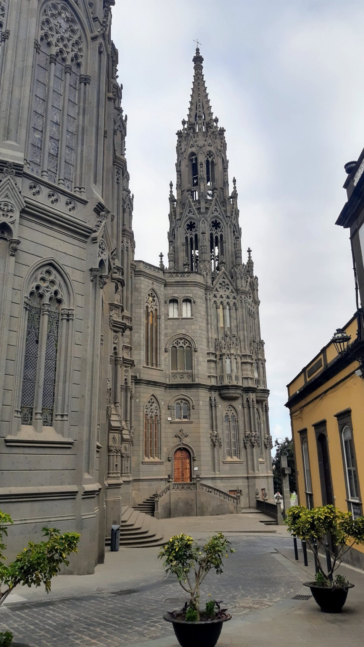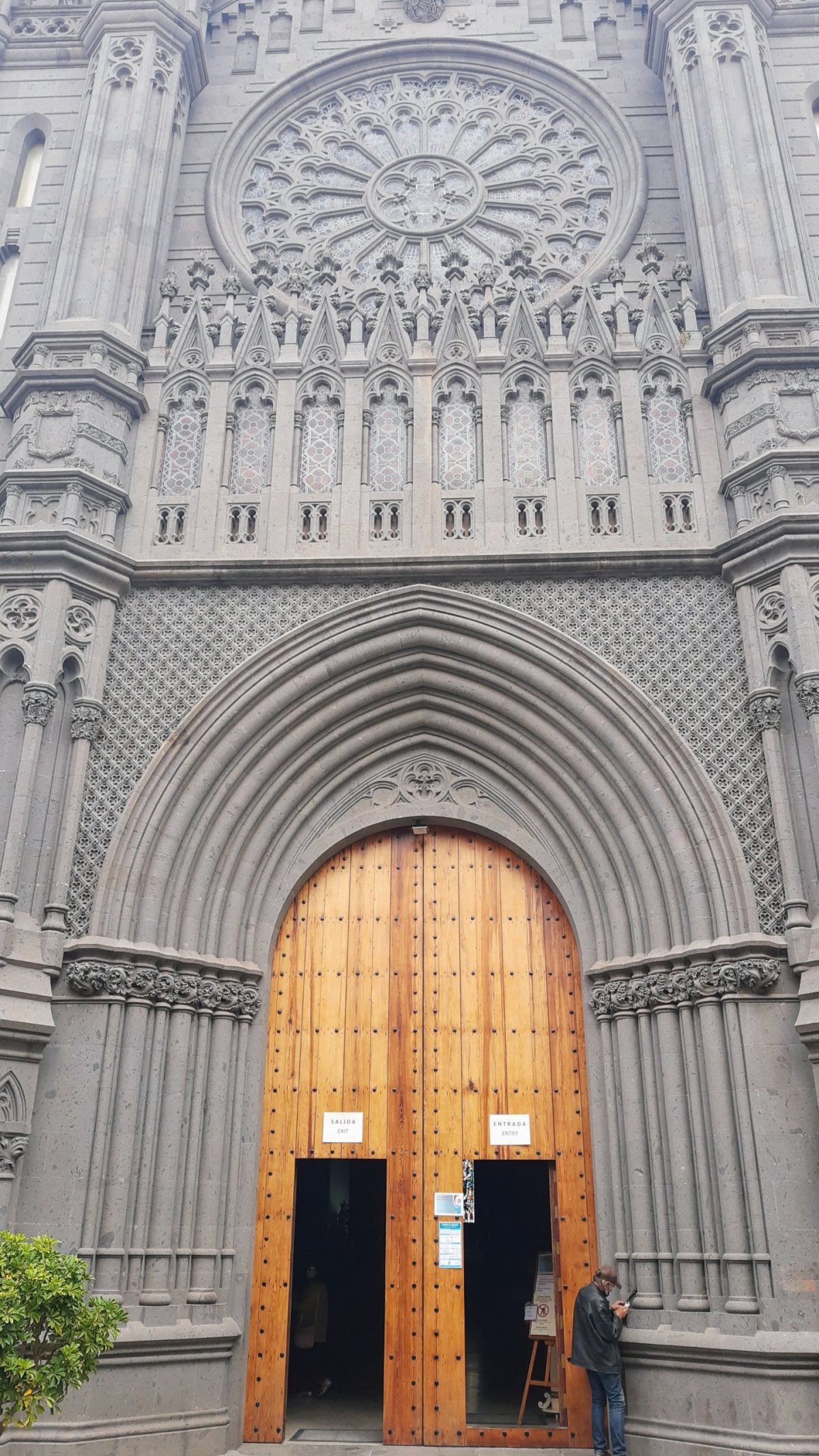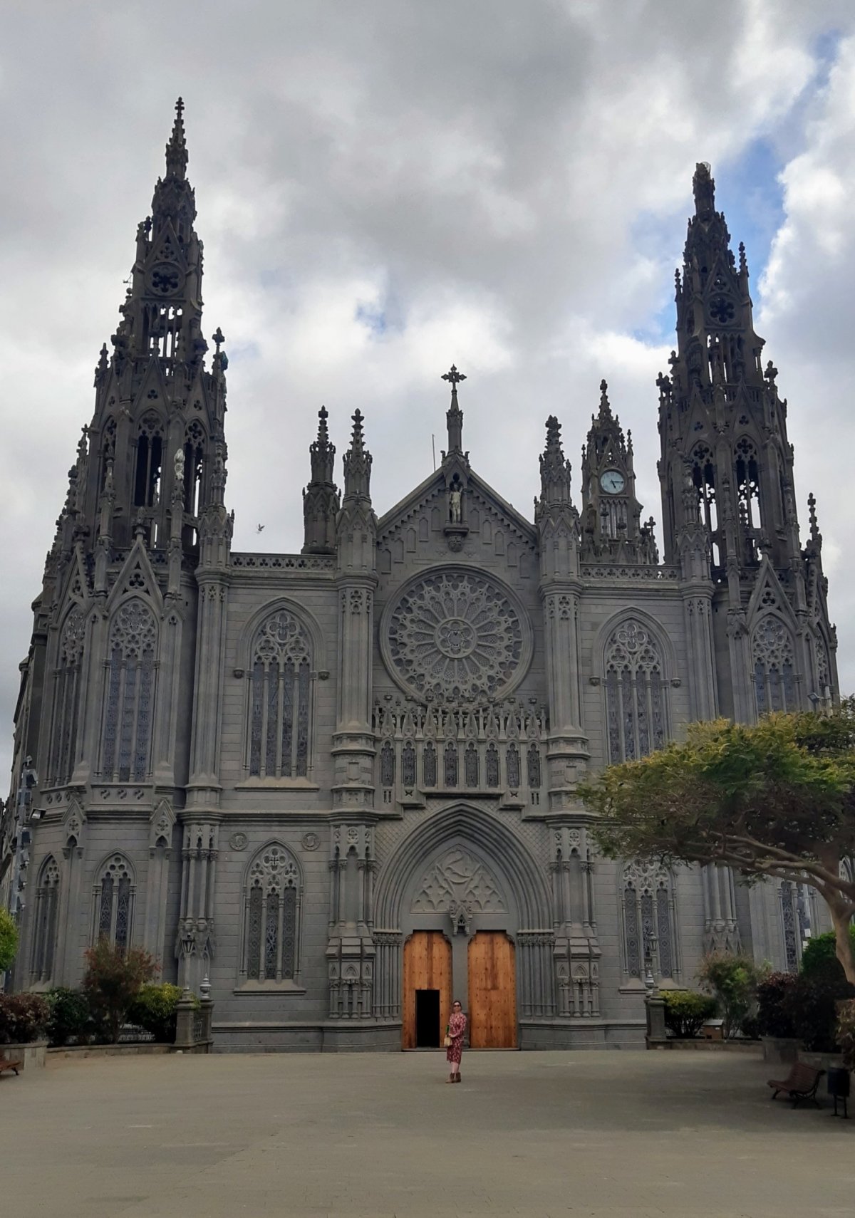 Naší poslední večerní zastávkou je Arucas, známý svou rumárnou. Ta už je večer zavřená, takže my zde míříme za druhou zajímavostí – místní zdaleka viditelnou dominantou – kostelem z černého kamene z počátku minulého století. Ten navrhl jeden ze žáků architekta Antoni Gaudiho, takže podobnost s barcelonskou Sagrada Familia není čistě náhodná, jen se samozřejmě nejedná o dílo tak monumentální, přesto na místní poměry zcela unikátní a podobně úchvatné. Škoda jen, že jeho obhlídku zvenčí vám ruší neustálý automobilový provoz ve starověkých přilehlých uličkách.