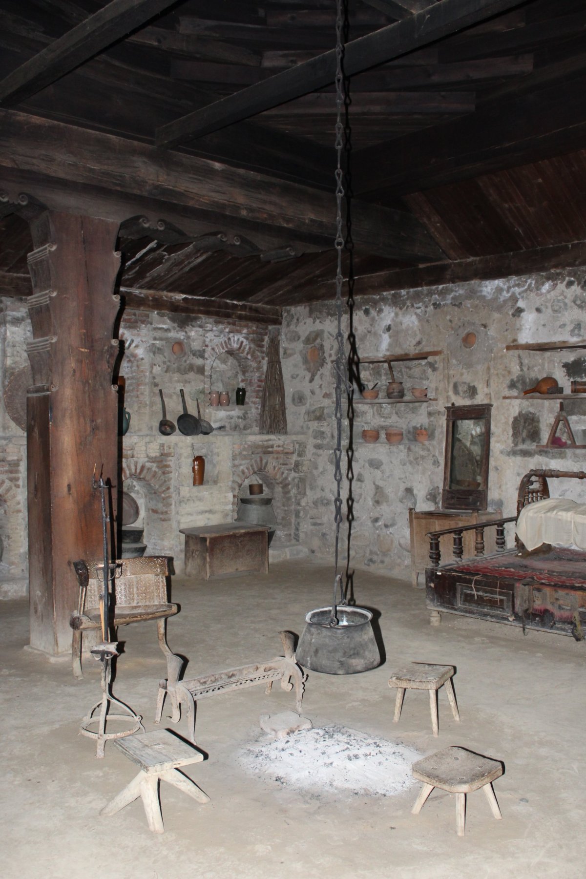 Dnes je poslední den. Auto máme vrátit do 6ti hodin, v plánu máme jen pár pojížděk po Tbilisi, takže vcelku vyspáváme, snídáme opět omeletu a velmi známou cestou jdeme k autu. První dnešní zastávka má být u Kroniky Gruzie – obrovský monument tyčící se nad Tbiliským mořem. V mapě to vypadá, že je jedno, z jaké strany se tam přijede, a proto Honzu navádím z místního sídliště. Po tom, co jsme projeli 3x tam a zpět a nenašli žádnou cestu, se do mapy podíval Honza a zjistil, že z druhé strany kopce je parkoviště přímo u monumentu. Já jsem ho teda vůbec neviděla. Takže objíždíme kopec a parkujeme u Kroniky. Byl by to opravdu úžasný pomník, i když trochu megalomanský, kdyby jej trochu udržovali, ale i tak se mi líbí a je odtud i krásný výhled. Sjíždíme dolu k Tbiliskému moři (samozřejmě se nejedná o moře, ale o jezero s tímto názvem), a protože máme 4x4, tak se Honza odváží sjet po písčitých cestách až na pláž. Nikdo tu není, pouze pár přivázaných loděk. Zouváme si boty a brouzdáme se v krásně čisté a i docela teplé vodě. Nemáme času nazbyt a musíme popojet, ještě Honzovi dělám fotku v autě na písčité cestě s jezerem a pak přejíždíme do čtvrti zbohatlíku a parku Vave – dříve chudinská dělnická čtvrť, ve které bolševici u zdi veřejných záchodků postříleli téměř veškerou tehdejší aristokracii a buržoazní elitu ve Tbilisi. Je zde vidět velký rozdíl, domy jsou v pěkném stavu, trochu to připomíná Vinohrady a je tu také spousta mrakodrapů. Po rychlé procházce parku odjíždíme směr etnografické muzeum neboli skanzen. K vstupence dostáváme i mapku všech budov. Je to velmi zajímavé, jsou tu ukázány různé styly různých staveb – každé Gruzínské etnikum stavělo odlišné. V několika budovách jsou i průvodci, kteří dávají velmi zajímavý výklad (buď v ruštině, nebo angličtině), konečně se také dozvídáme, k čemu slouží keramické obří amfory, kterých jsme po Gruzii viděli povalovat nespočet.