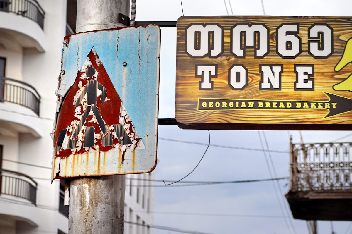 Přijíždíme k vyhořelému asi desetipatrovému panelového domu v depresivní lokalitě periférie města. Řidič zastavuje! No dopr... to nemůže být ono. "Promiňte, přejel jsem." Uf! Nakonec stojíme před útulným domkem. Beru za kliku plechových vrat, abych o minutu později zastavil na recepci. Usměvavý Gruzínec se mnou vyřizuje formality. Konečně jsem si odechl. Po prvotních rozpacích jdeme ještě na večeři. Míjíme sklepní butiky, malé sámošky i garážové vinařství. V restauraci nás posadí do "chatky" a k jídlu dostáváme plný stůl dobrot. Panuje tu bujné veselí.