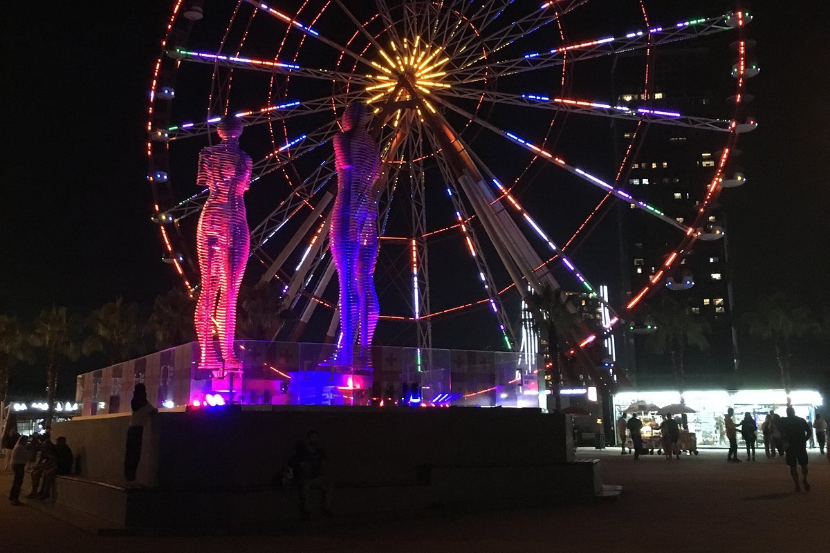 Mávám a hned u druhého řidiče mikrobusu mám štěstí. Netradičním zážitkem za pár "lari" se tak dostáváme z vybydlené pustiny zpět do životem pulsujícího Batumi. A protože se prarodiče uvolili hlídat ratolesti, prozkoumáváme noční velkoměsto jenom ve dvou.