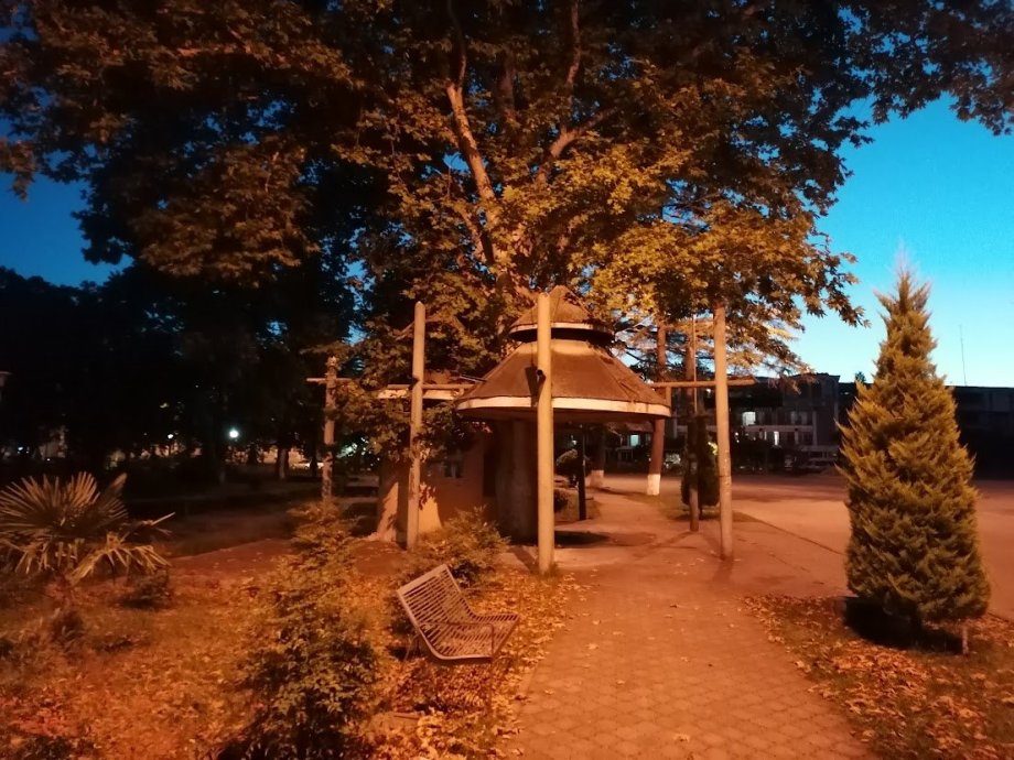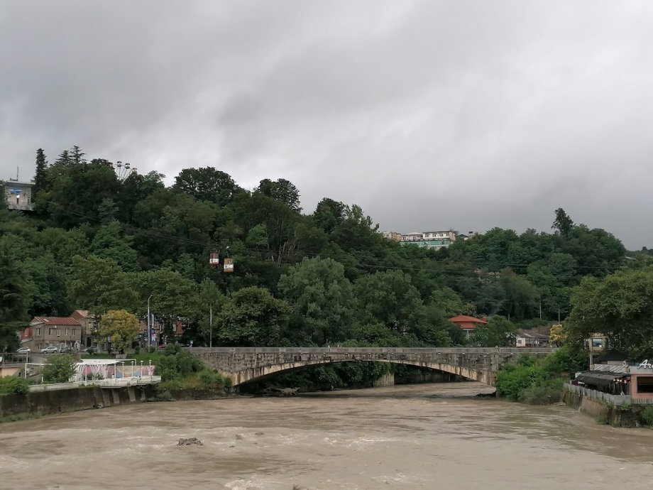 Kutaisi nás přivítalo nepříliš přívětivým počasím, větrem a vytrvalým deštěm. I přes připravené deštníky to nebylo příjemné, ale to už nám toto město udělalo vícekrát a další dny pak proběhly s krásným počasím, stejně tomu bylo i letos. Na hlavní silnici před letištěm jsme vyčkali maršrutky, jedoucí do města a za 5 GEL pro oba jsme byli dopraveni k autobusovému nádraží. Od něj jsme pak městským autobusem č. 1 odjeli do centra na hlavní náměstí ke kolchidské fontáně. Novinkou pro nás bylo, že v MHD (samozřejmě nikoliv v maršrutkách) se dá platit kartou za 1,20 GEL/ jízda – pípá se jen při nástupu. Vzhledem k dešti jsme zašli do restaurace Baraqa, ve které jsme byli již několikrát při minulých návštěvách. Jídlo bylo výborné a vzhledem k wifi jsme našli ubytování asi 150 metrů od nás, a to v Guest House Kofe, kam jsme se vydali. Déšť stále přetrvával. V hostelu jsme se vysprchovali, převlékli a náš životní standard se s ohledem na sucho, teplo a sytost zlepšil.