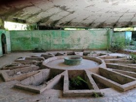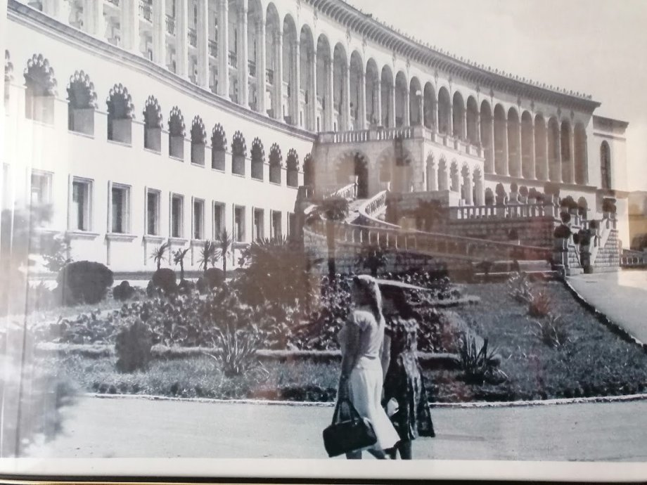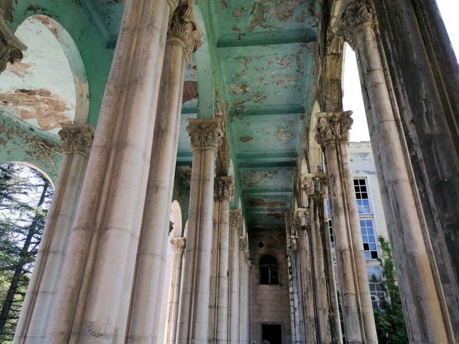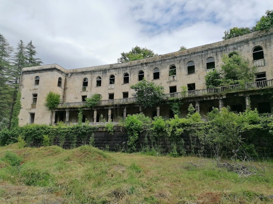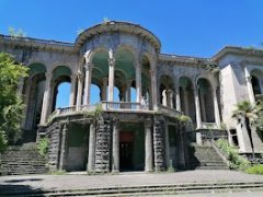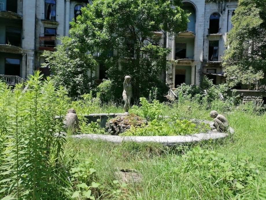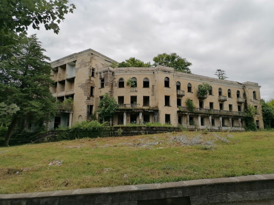 Druhý den ráno, tj. v sobotu 1.7.2023 jsme se nejdříve vypravili na místní Zelný trh (na mapě označený jako Green Bazaar). Nakoupili jsme si spoustu levného ovoce (třešně za cca 40 Kč/kg), čurčchel a hlavně koření, adžiky, svanské soli, sušeného prášku z granátových jablek (výborné na ochucení snad čehokoliv). Pak jsme se vydali z autobusového nádraží maršrutkou do městečka Tskaltubo. Již jsme v něm jednou byli, ale to jsme tenkrát jen přestupovali při cestě do Prométheovy jeskyně. Tenkrát jsme si řekli, že se do Tskaltuba prostě musíme vypravit separátně. Prošli jsme mnoho míst, obrovských opuštěných sanatorií v zoufalém stavu, které mají atmosféru zašlého času. Tak, jako v Černobylu, už si příroda bere zpět výdobytky civilizace a snaží se vrůst a přehlušit železobetonové a jiné konstrukce staveb, kdysi tak obrovské. Možná největší dojem na mě udělaly lázně s číslem 8. Snad proto, že jsem na fotkách v našem hotelu viděla jejich vzhled v roce 1956 a v kontrastu s tím stav nynější. Asi nemá smysl je popisovat, něco je vidět na fotkách a nejlepší je si tu atmosféru zažít osobně. Na pozdní oběd či už spíše večeři jsme se vydali do restaurace Lake side. Ceny jídla se oproti roku 2018 mírně zvýšily, ale nebylo to tak dramatické, jako u nás. Na jaře roku 2018 jsme průměrně projedli 40 GEL, nyní to bylo kolem 60 – 65 GEL. A to jsme se možná ještě víc rozjedli, než tenkrát, tudíž cca v průměru 100 korunový rozdíl při naší spotřebě v rozmezí 5 let nepovažuji za dramatický inflační nárůst. Ubytovali jsme se v příjemném hotelu Imereti Health Resort, který má na chodbách fotografie míst, která jsou dnes bohužel zpustošená. Jedna fotka se mi obzvlášť zalíbila, bylo na ní sanatorium Tbilisi a před ním prochází dvě mladé ženy v bílých šatech s rozšířenou sukní dle módy z pozdních 50. let, přesně takové, jaké dle fotek nosila i moje o dost starší sestra.