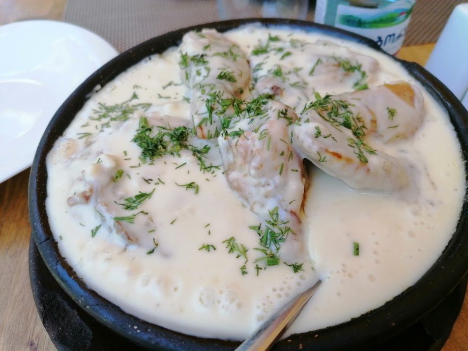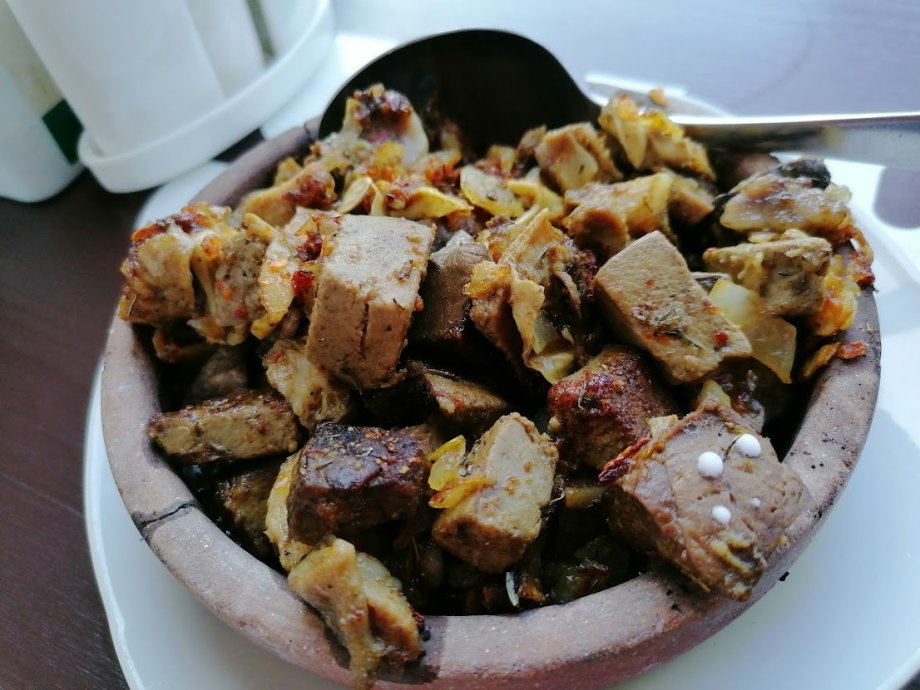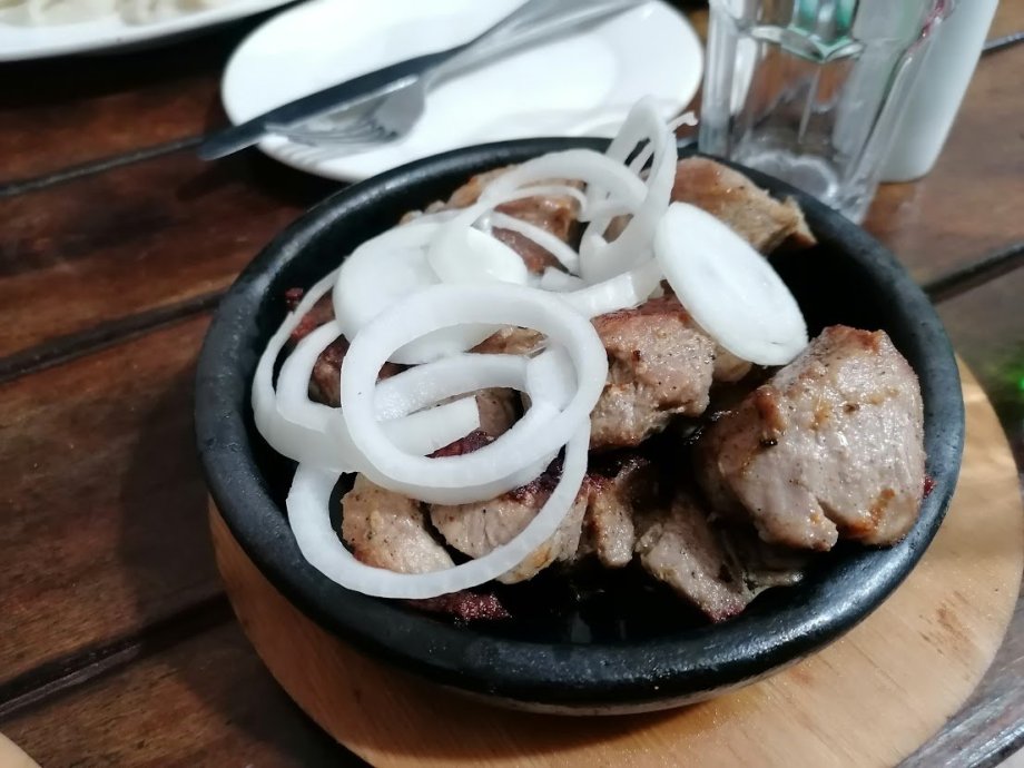 Po chvíli jsme sjeli dolů do města a pocítili jsme hlad. J0X našel místní restauraci Kvicha trochu mimo centrum a které našel J0X na wikivoayge, ve které jsme povečeřeli, dala jsem si točené Natakhtari, za 3 hlavní jídla + nápoje jsme zaplatili 55 GEL. Dal se s námi do řeči místní štamgast Martin, který žije v Kutaisi už 16 měsíců a byl rád, že si může promluvit česky, nikoliv jen rusky. Den byl náročný, tak jsme kolem 22 hodiny už uléhali ke spánku.