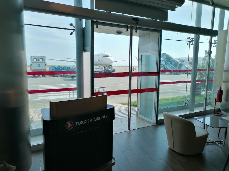 V pátek 7.7. jsme pěšky vyrazili ráno na letiště v Trabzonu a po svěží procházce jsme zajistili v kiosku check in na oba lety. Bezpečnostní kontrola byla důkladná, u pásu mě donutil personál vyndat veškeré věci z batohu kvůli malému skládacímu deštníku na dně batohu. J0X rezervoval za 17,68 euro pro oba vstup do salonku Turkish Airlines, ve kterém jsme posnídali a poté, kdy se pro ostatní cestující z našeho letu brána uzavřela, jsme byli vpuštěni do letadla.
