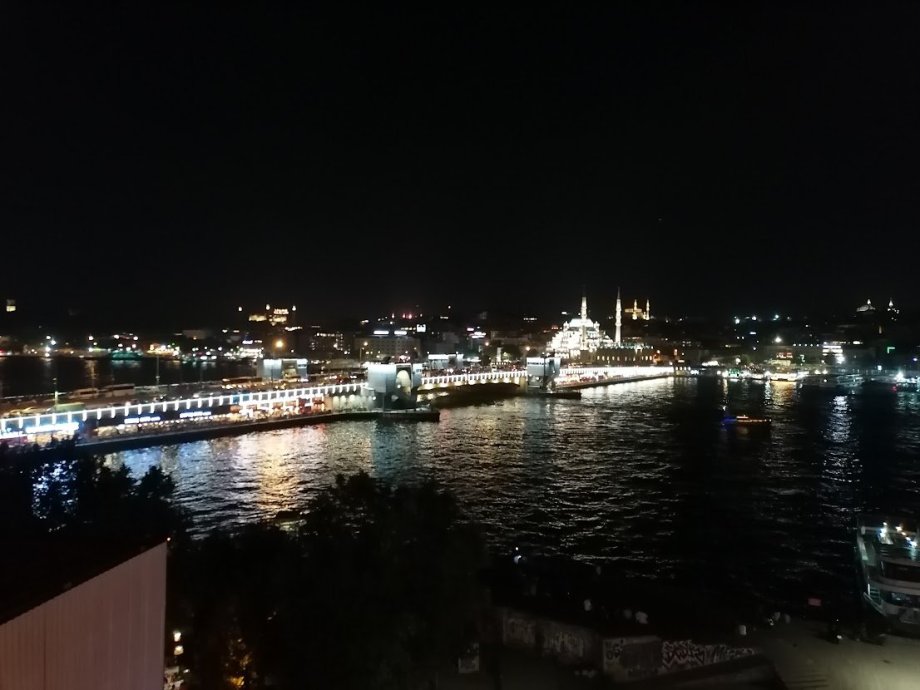 V asijské části jsme se najedli, prošli jsme trh a pak lodí vyrazili přes Bospor zpět do domovské Evropy. Ubytovali jsme se v hodně skromném Instanblue Taksim Apart Hotel, ale na přespání pro hodně skromné jedince to stačí. Vyrazili jsme nejdřív do hammamu Büyük Hamam Kasımpaşa, ale bohužel, vstup pro ženy byl pouze do 20 hodin, tudíž by pustili jen J0Xe, mě ne a byť jsem mu nabízela, že si udělám jiný program, sám jít nechtěl. Odjeli jsme tedy do čtvrti Eminönü, kde jsme povečeřeli v docela luxusní restauraci s výhledem na galatský most a po procházce si dali ještě rybí sendvič (balik ekmek).