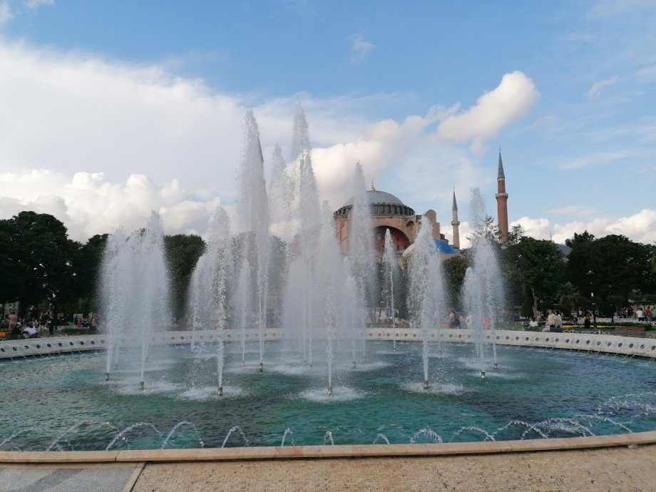 Nedaleko od hammamu jsme se naobědvali pilafu, vitamíny doplnili ayranem, projeli pár istanbulskými lanovkami, prošli se kolem paláce Dolmabahçe k přístavu a na trajekt, odpoledne ke Konstantinově sloupu, k mešitě sultána Ahmeda (Modré mešitě), hadímu sloupu z Delf, k chrámu Boží Moudrosti (Hagia Sofia), založeném Konstantinem a přebudovaném na přání rodáka od Skopje, Justiniána I, jehož zásluhy o římské právo jsou obdivuhodné a jeho život je fascinující, paláci Topkapi, jídlu, bazarům, kávě a nákupům.