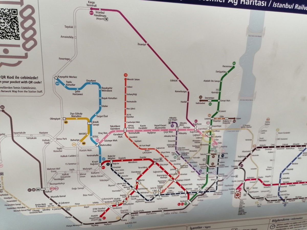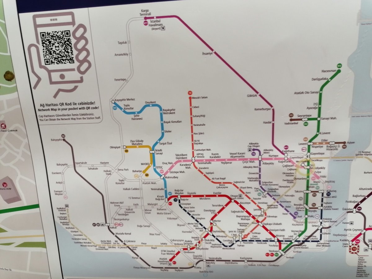 Neděle 9.7. ráno byla věnována cestě na letiště IST – z náměstí Taksim jsme odjeli v 7 hodin, na letiště jsme vstupovali v 8,25 hod. Z Taksim nejdřív linkou M2 do zastávky Şişli – Mecidiyeköy, pak přestup na M7 do zastávky Kağıthane, tam pěší přesun asi 300 metrů na linku M11). Trvalo to tedy téměř půldruhé hodiny, a to zejména kvůli nutnosti přestupu v zastávce Kağıthane. Na podzim 2023 by mělo být zprovozněno prodloužení linky M11 do zastávky Gayrettepe, což snad cestu zrychlí.