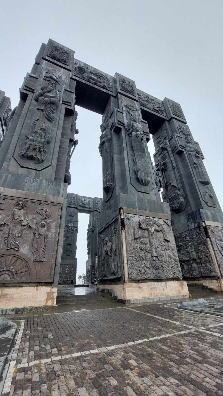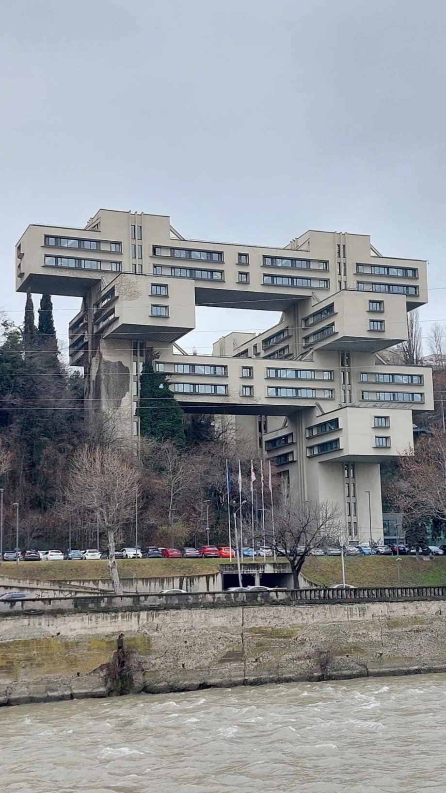 Poté jsme pokračovali k Chronicle of Georgia, monument vyobrazující výjevy ze života Ježíše Krista, ale i gruzínské hrdiny, krále i královny. Parkovné i vstup zdarma a je tam krásný výhled. Cestou z Tbilisi jsme se ještě zastavili vyfotit krásnou brutalistickou budovu ústředí Banky Gruzie.